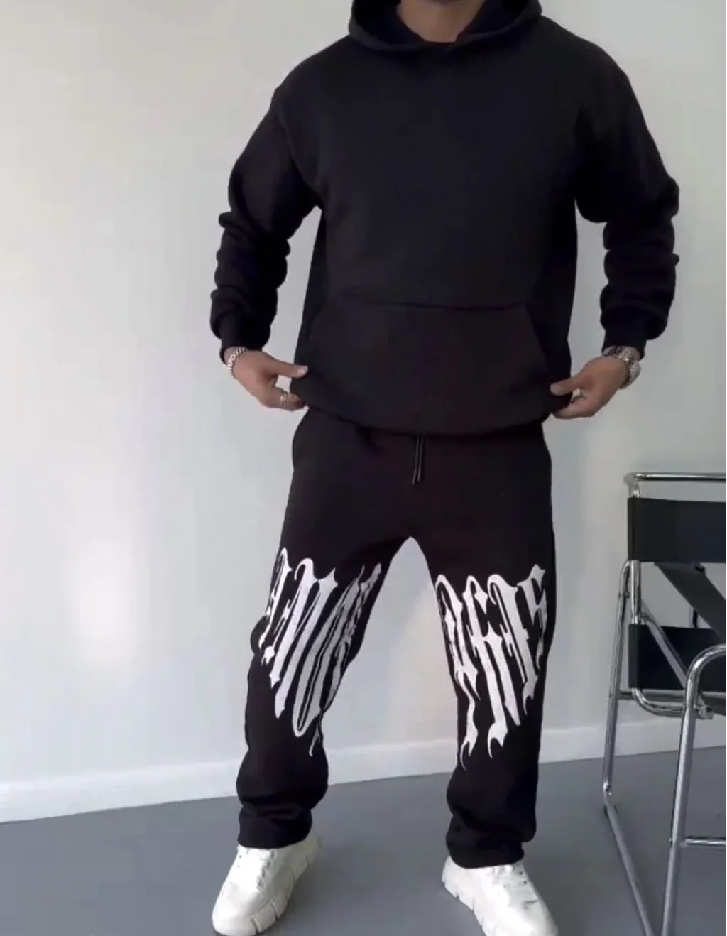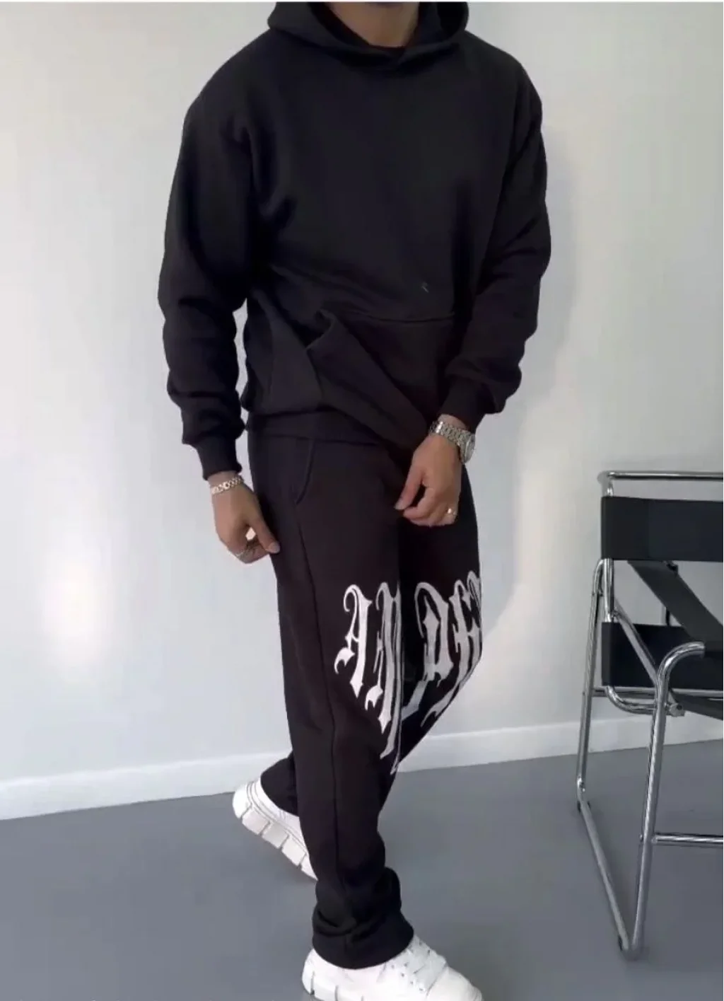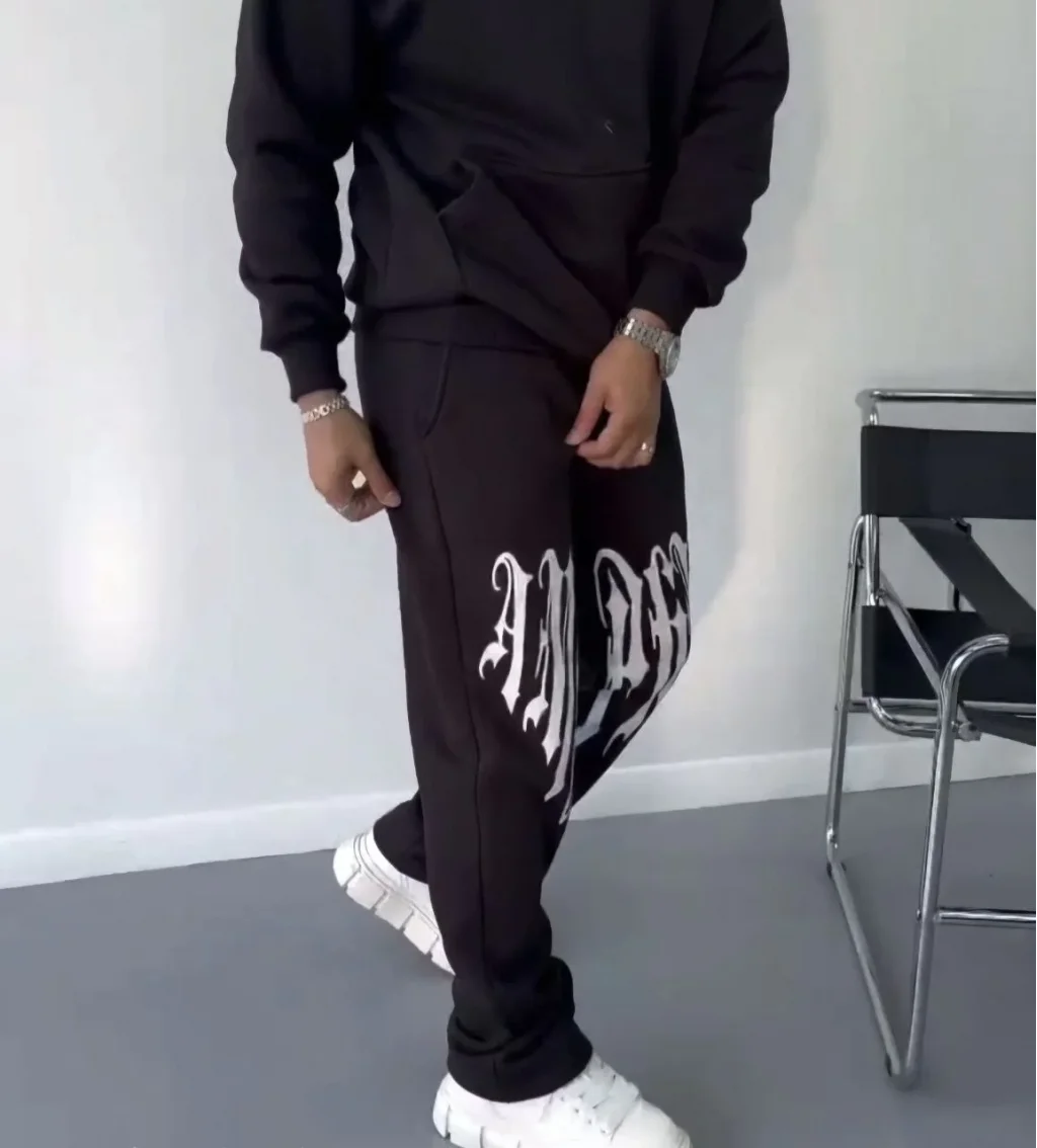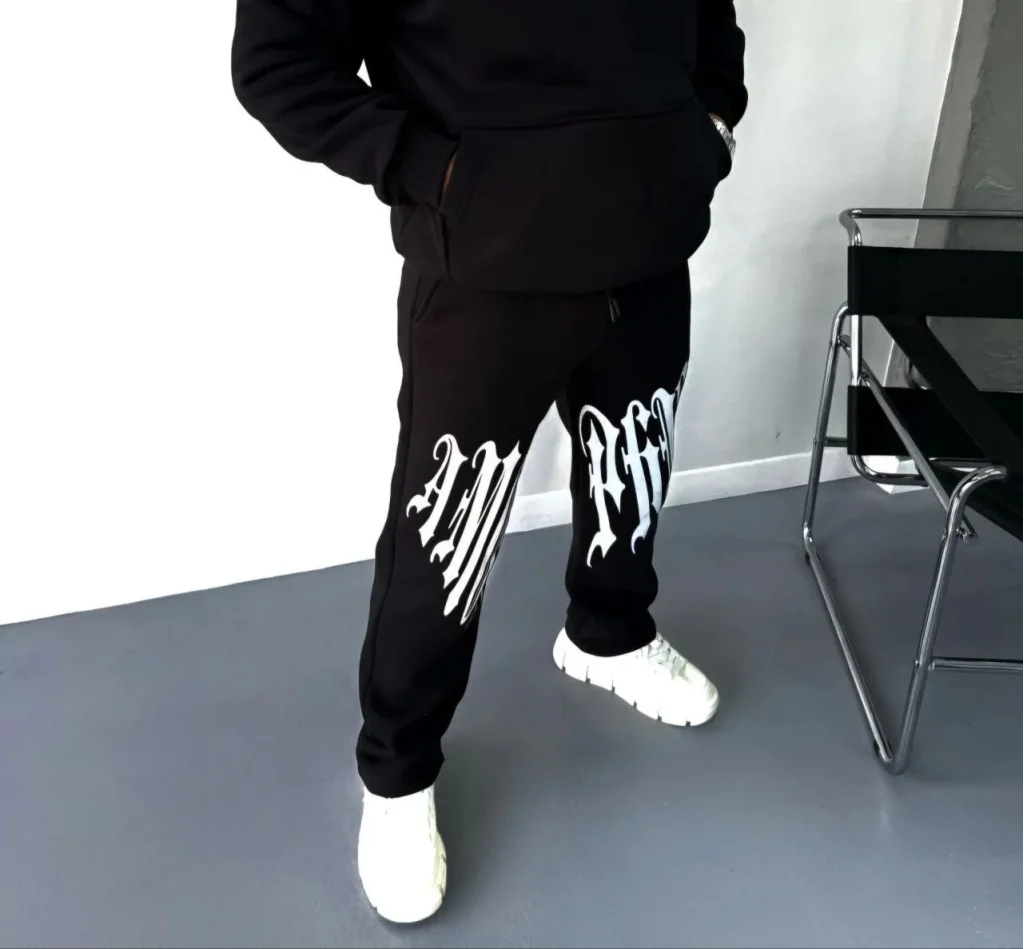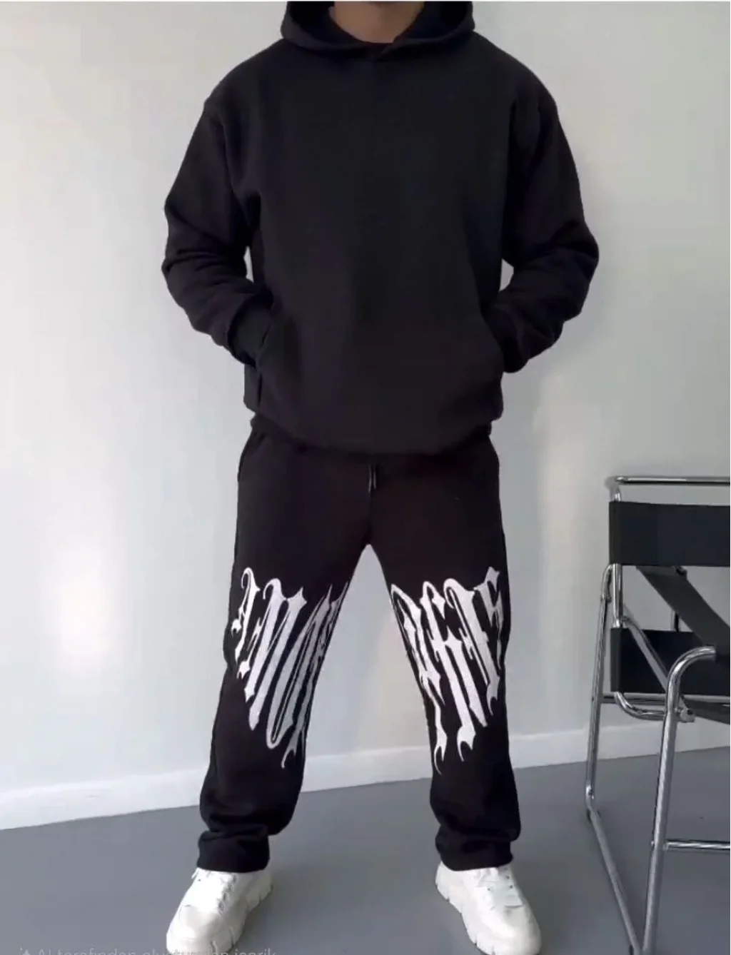 Üç İplik Baskılı Baggy Eşofman Pantolon - Siyah