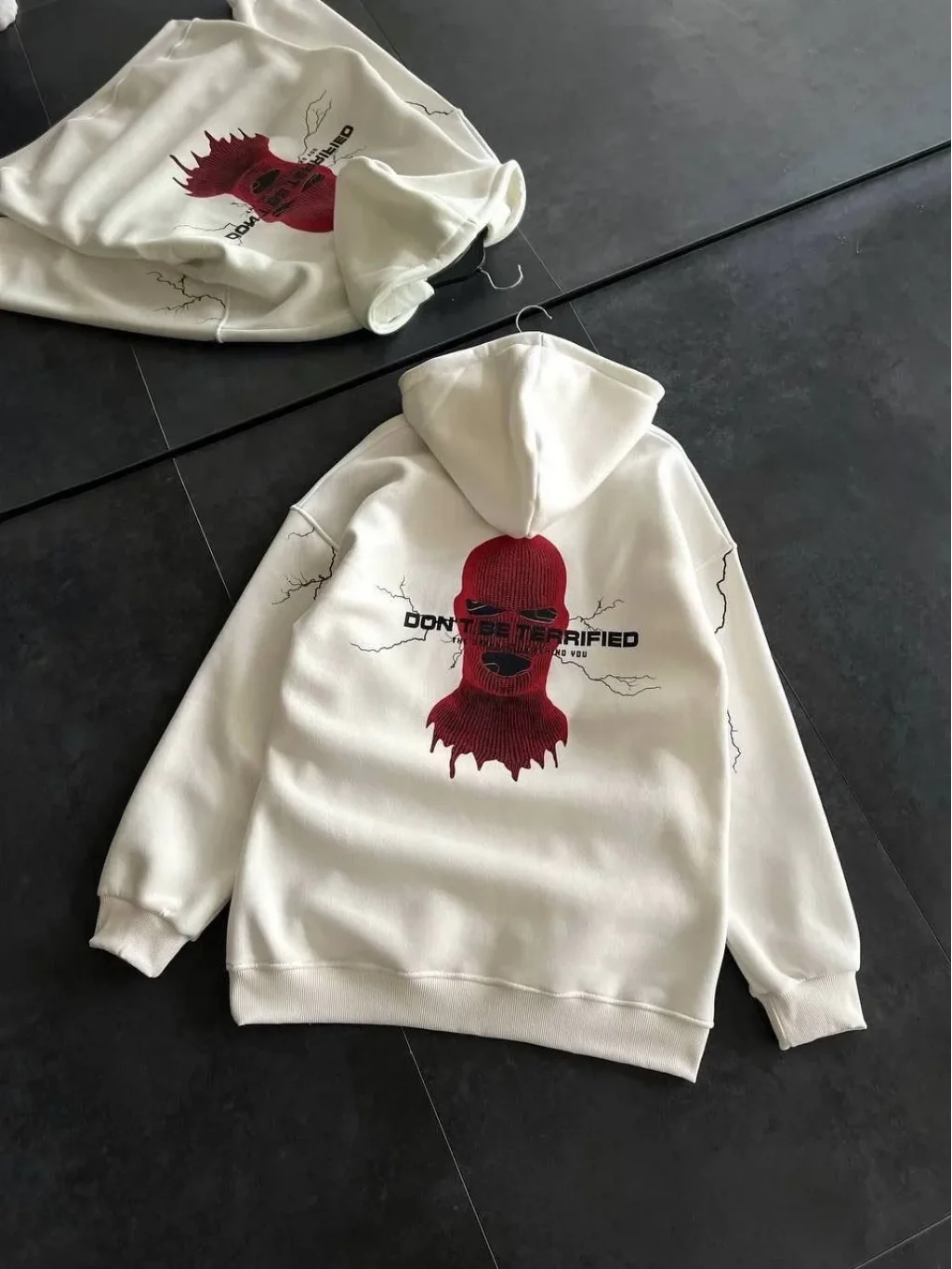 Üç İplik Kapüşonlu Baskılı Oversize SweatShirt- Beyaz