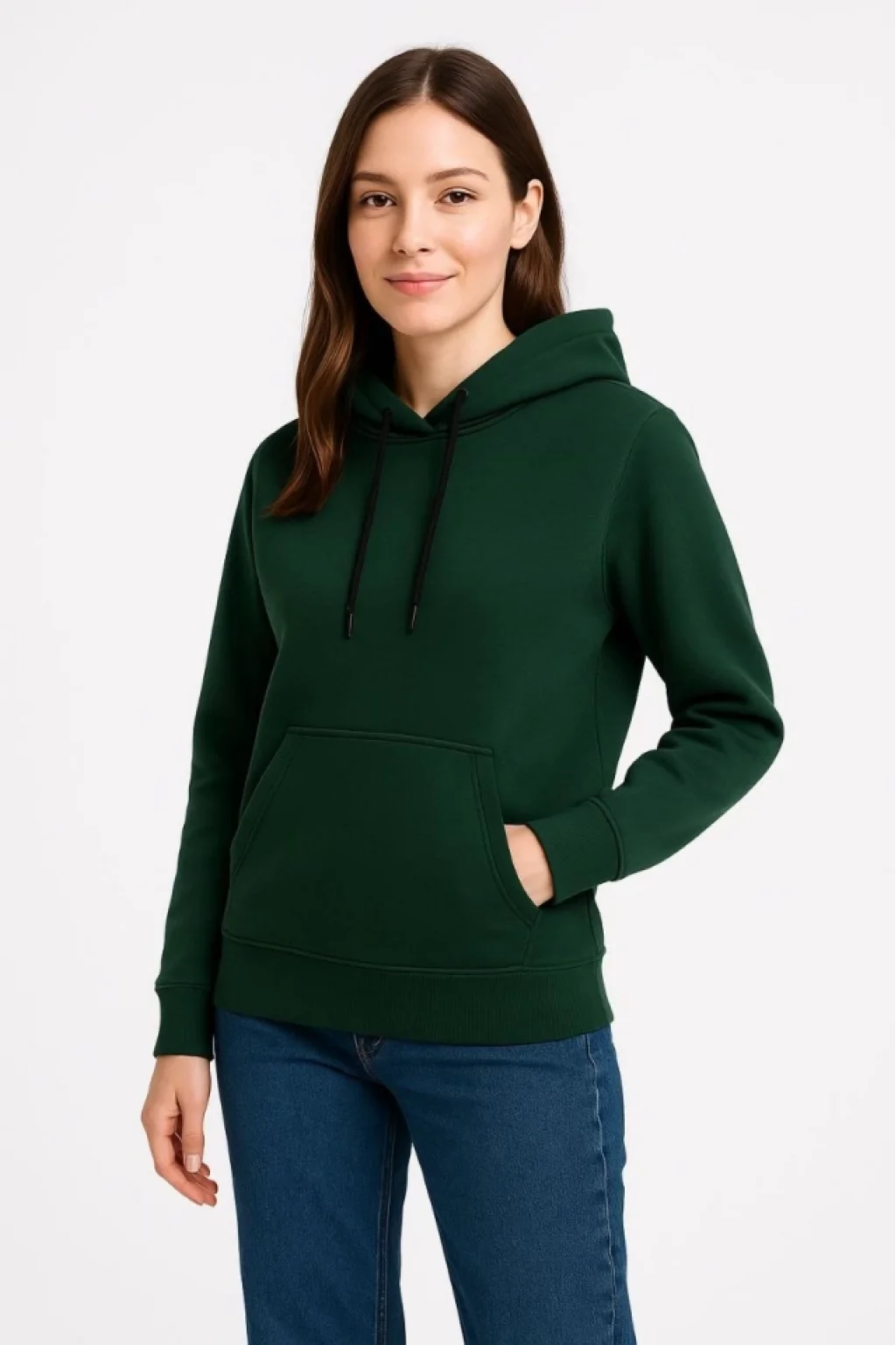 Üç İplik Kapüşonlu Kanguru Çepli SweatShirt Hoodie - Haki