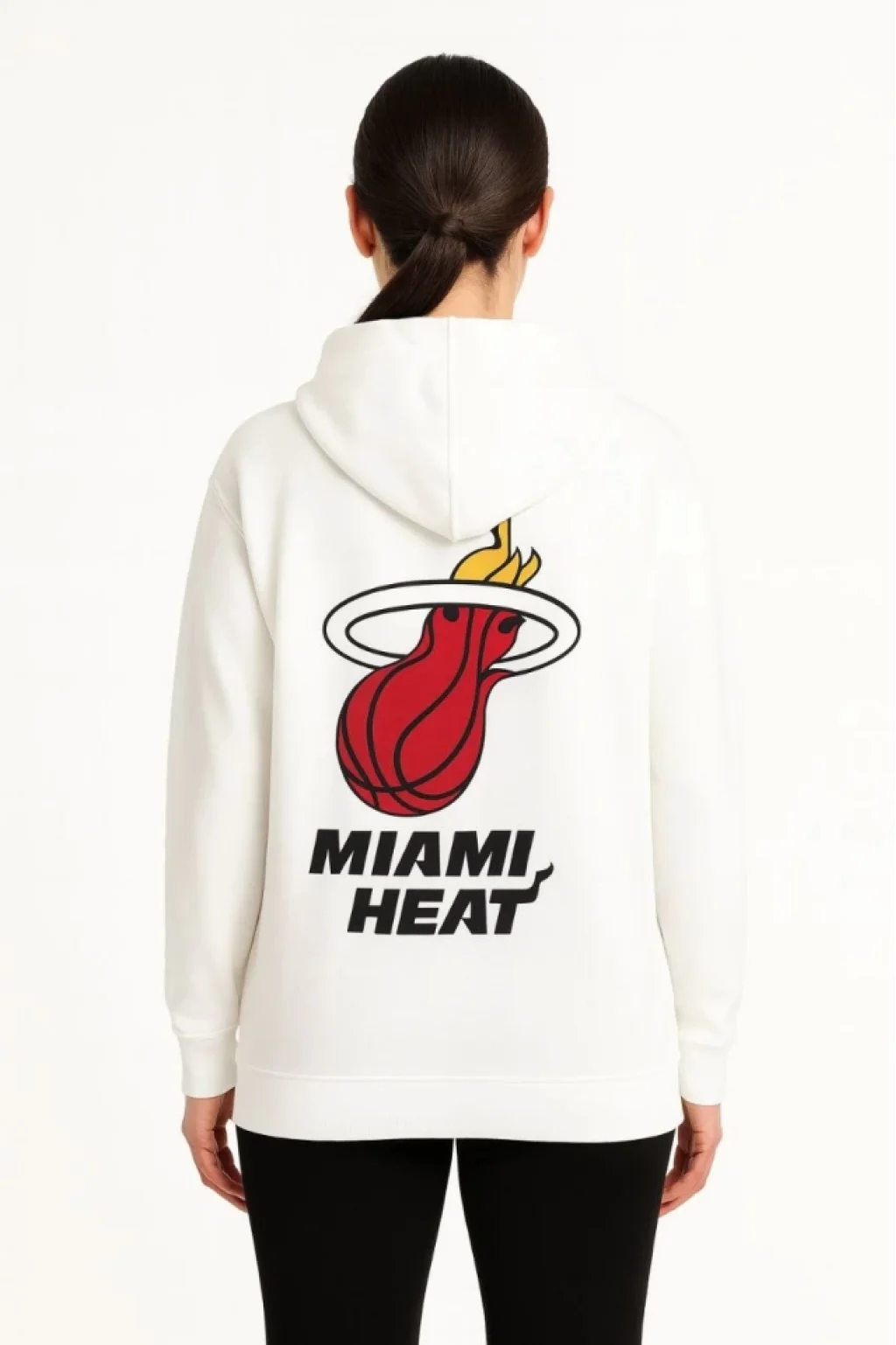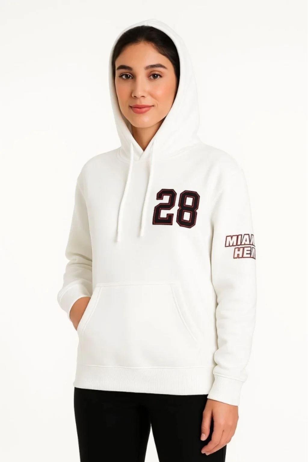 Üç İplik Kapüşonlu Ön Ve Arka Baskılı SweatShirt Hoodie - Beyaz