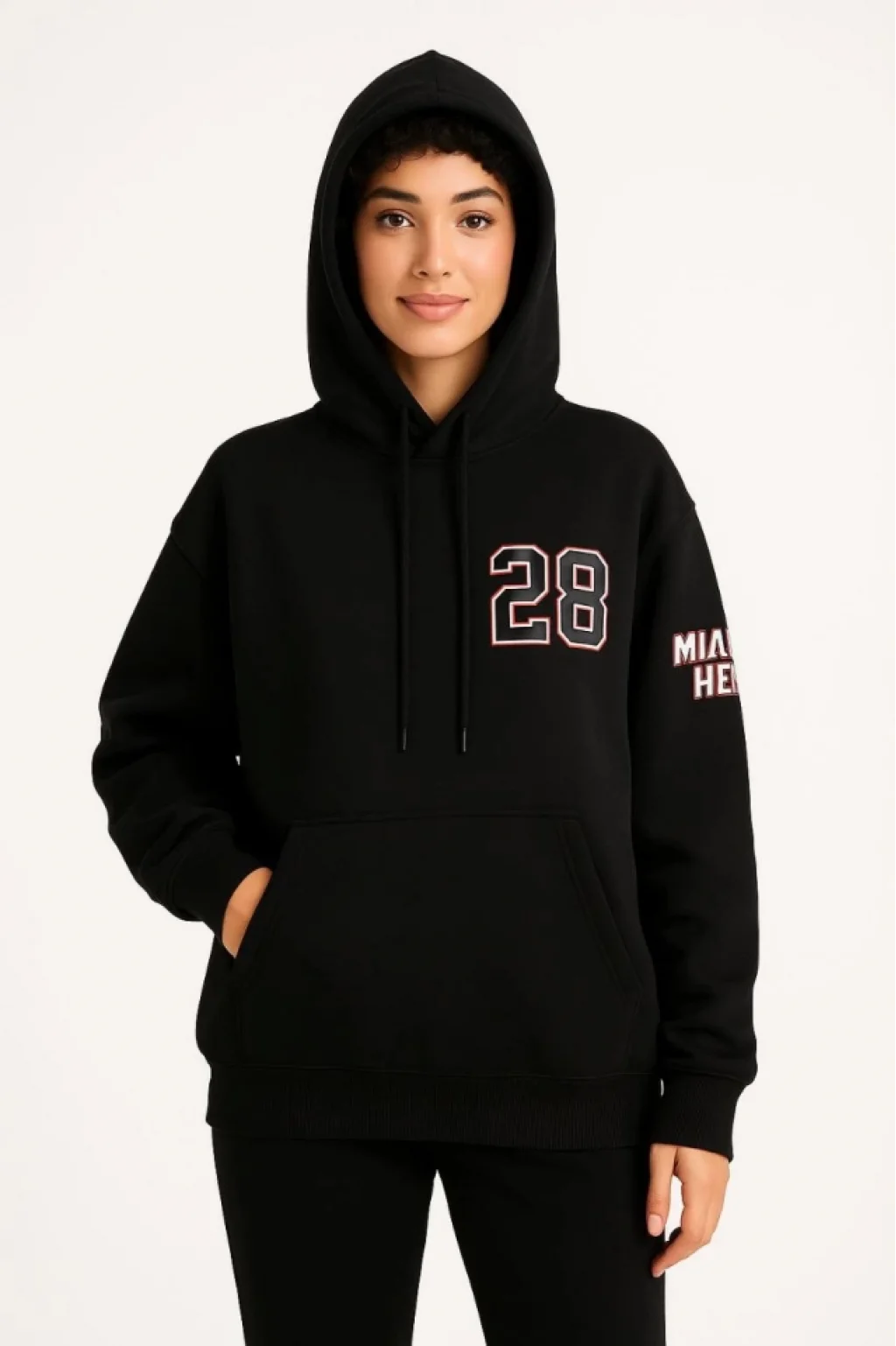 Üç İplik Kapüşonlu Ön Ve Arka Baskılı SweatShirt Hoodie - Siyah