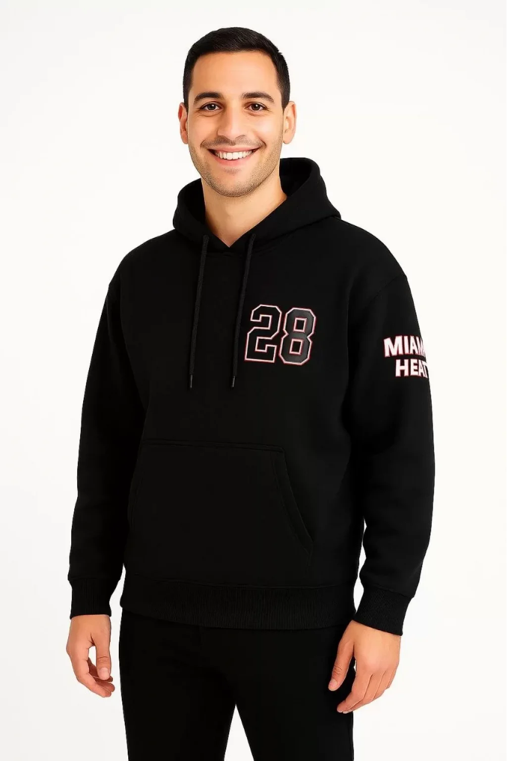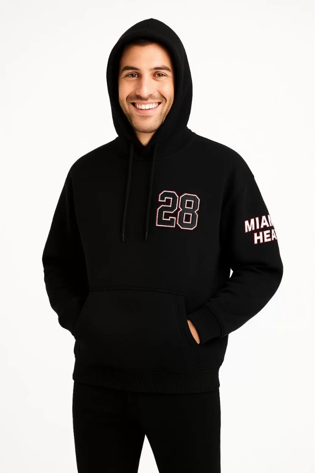 Erkek Kapşonlu Sweatshirt – Üç İplik Şardonlu Kumaş, Oversize Fit, Ön & Arka Baskılı, Kanguru Cepli, Kışlık Rahat Hoodie - Siyah