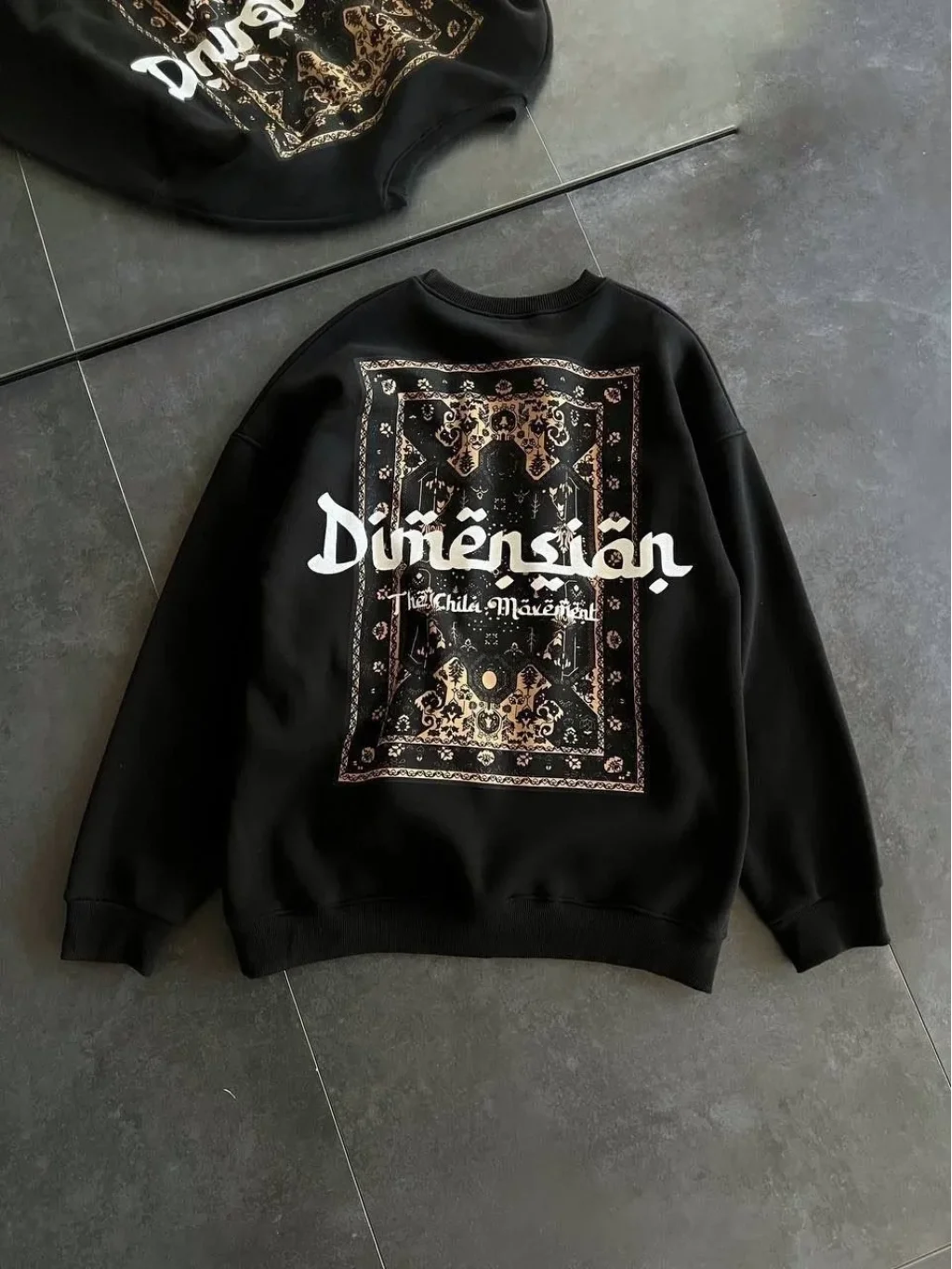 Üç İplik Penye Bisiklet Yaka Baskılı SweatShirt - Siyah