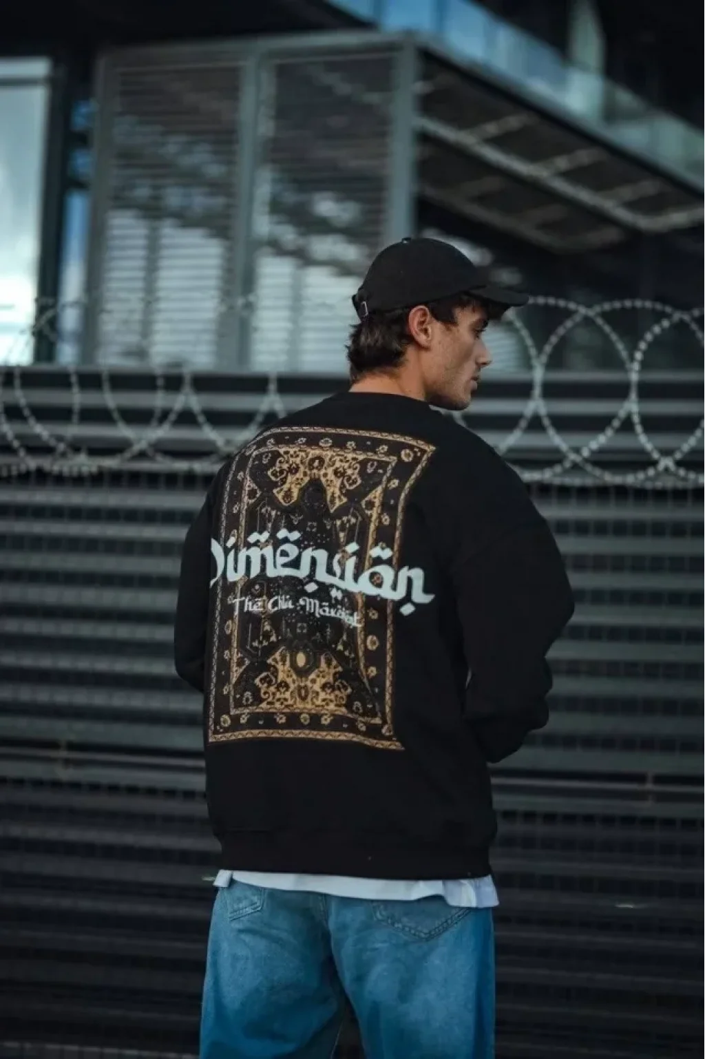 Üç İplik Penye Bisiklet Yaka Oversize Baskılı SweatShirt - Siyah