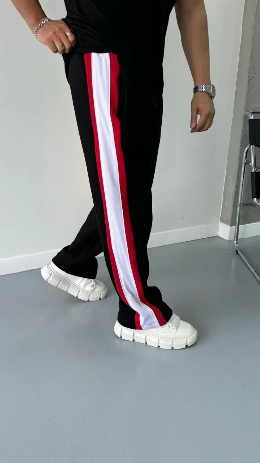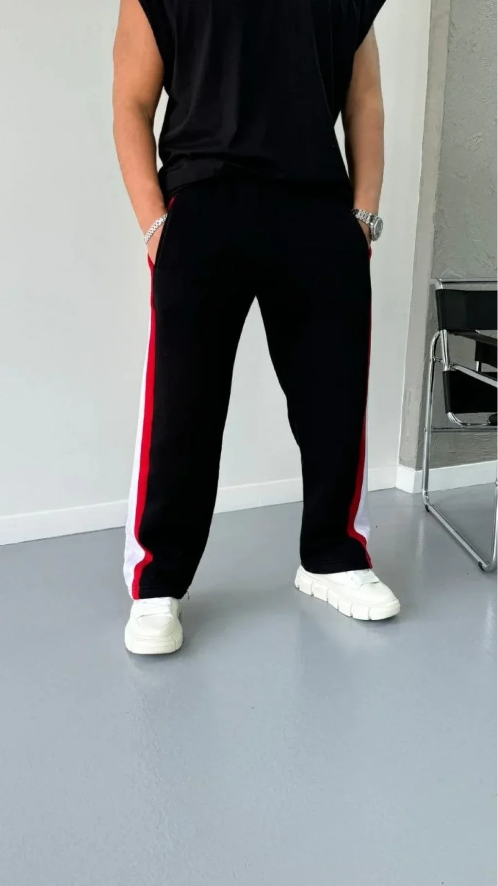 Üç İplik Şeritli Eşofman Pantolon - Siyah