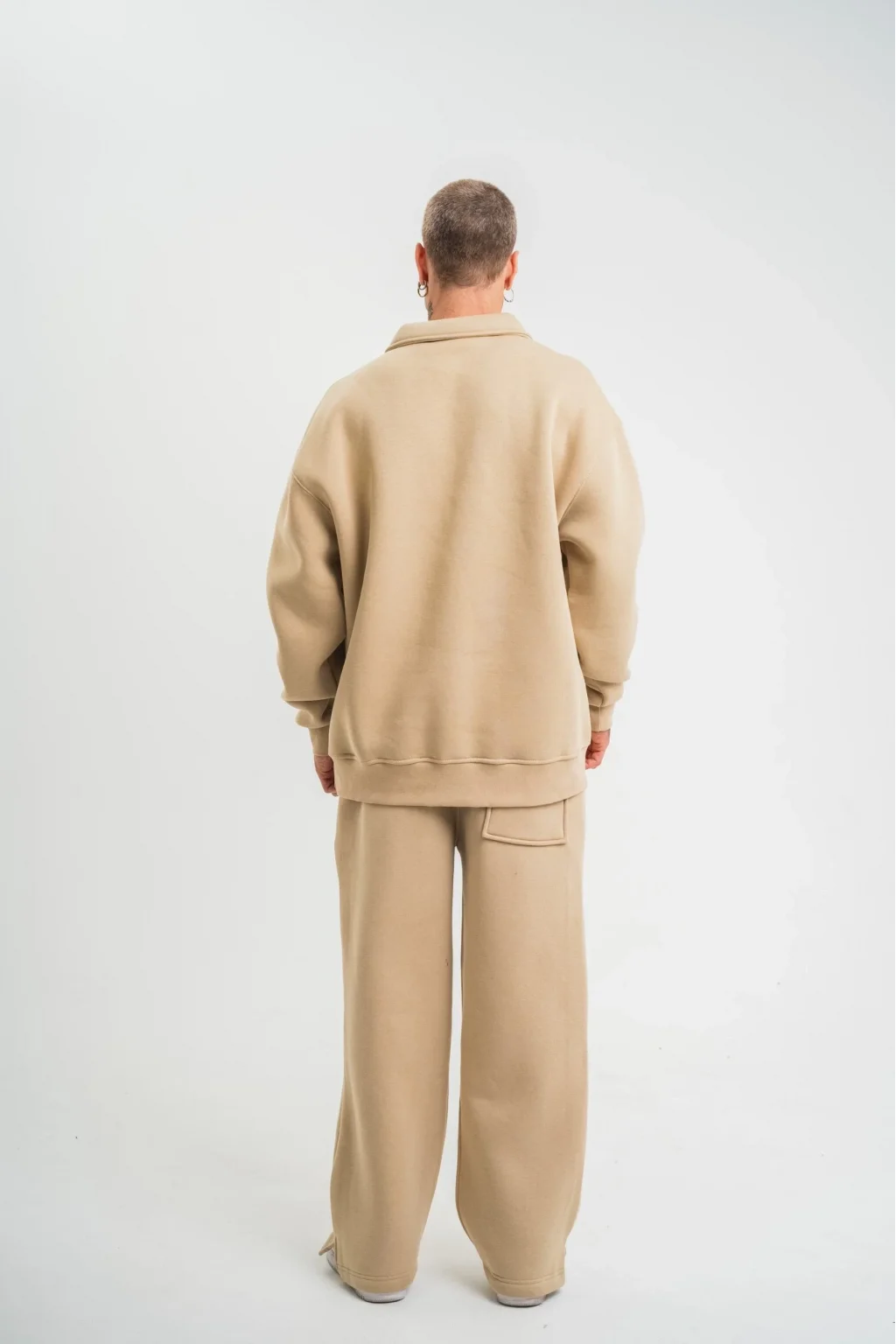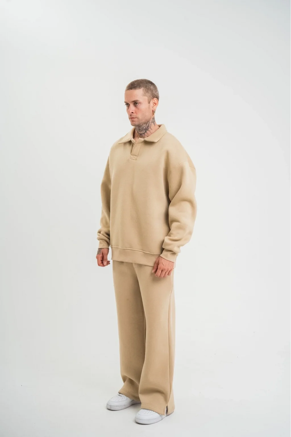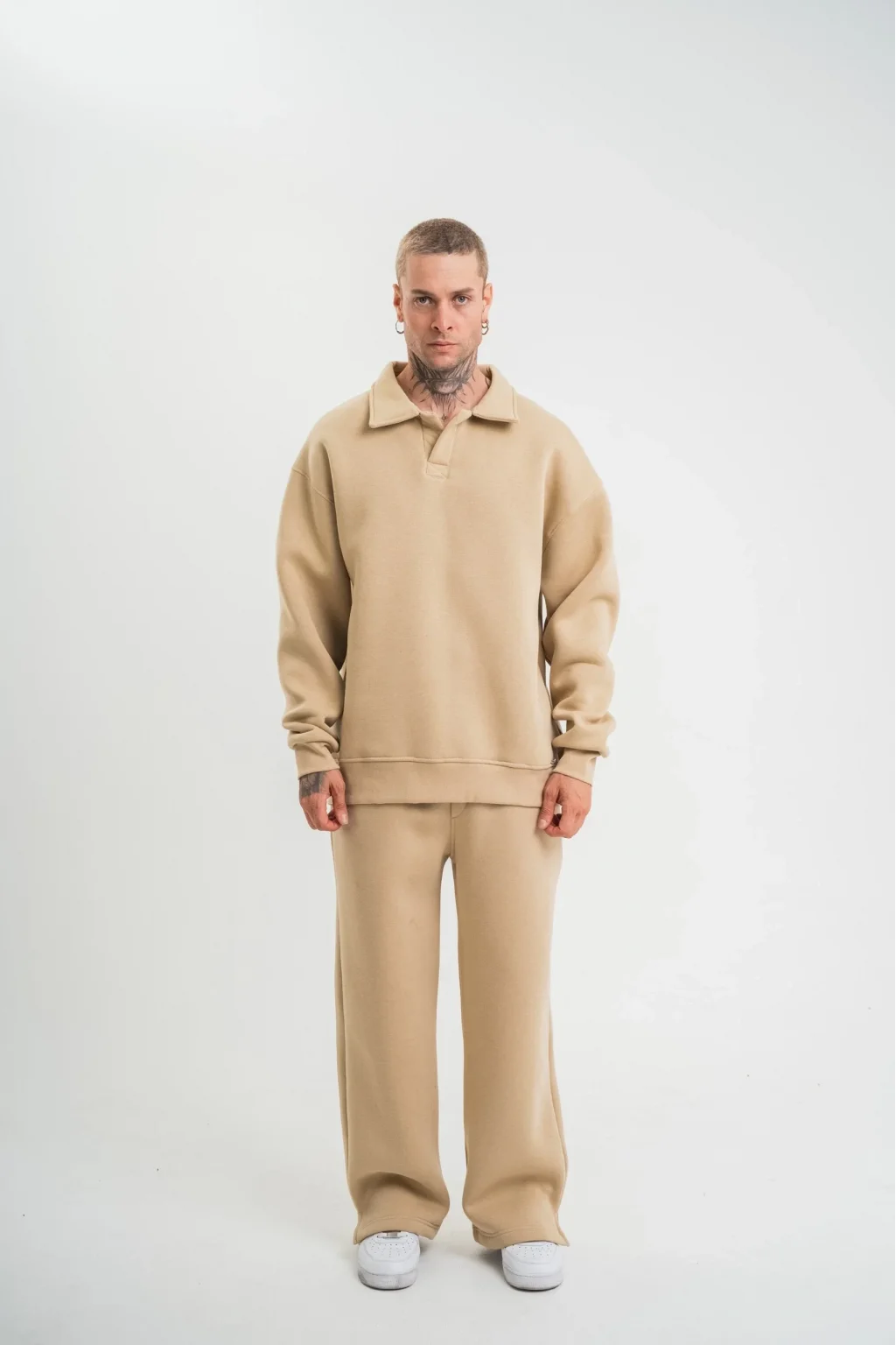 Üç İplik Uzun Kol Yakalı Eşofman Takım - Bej
