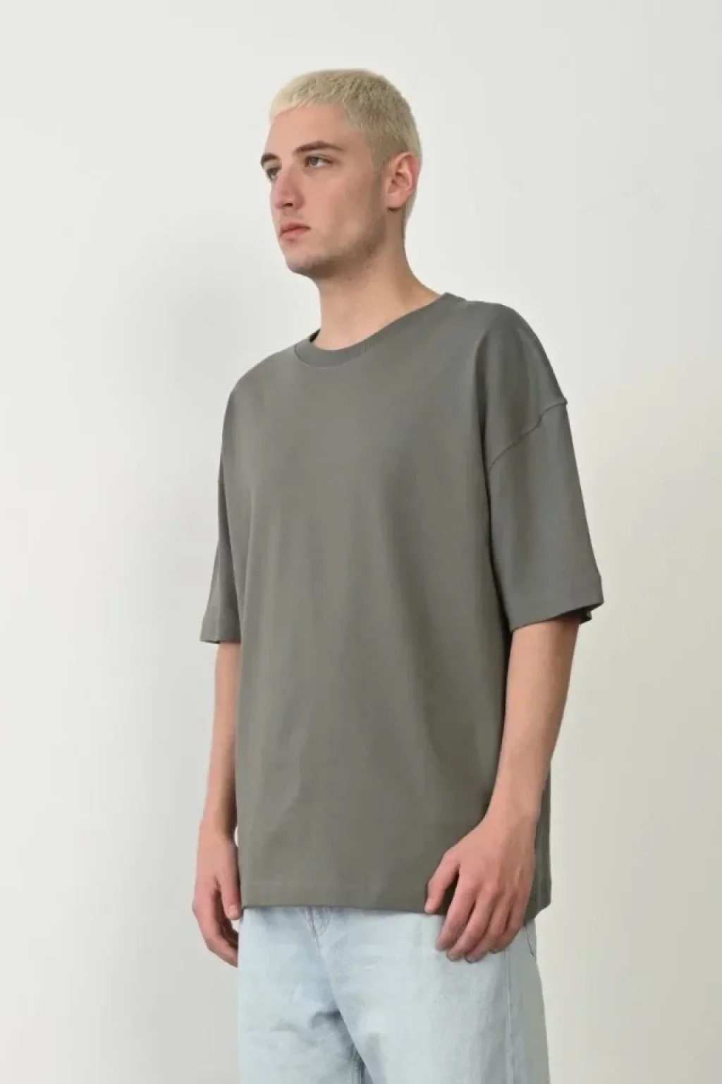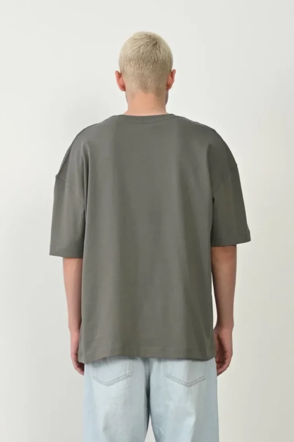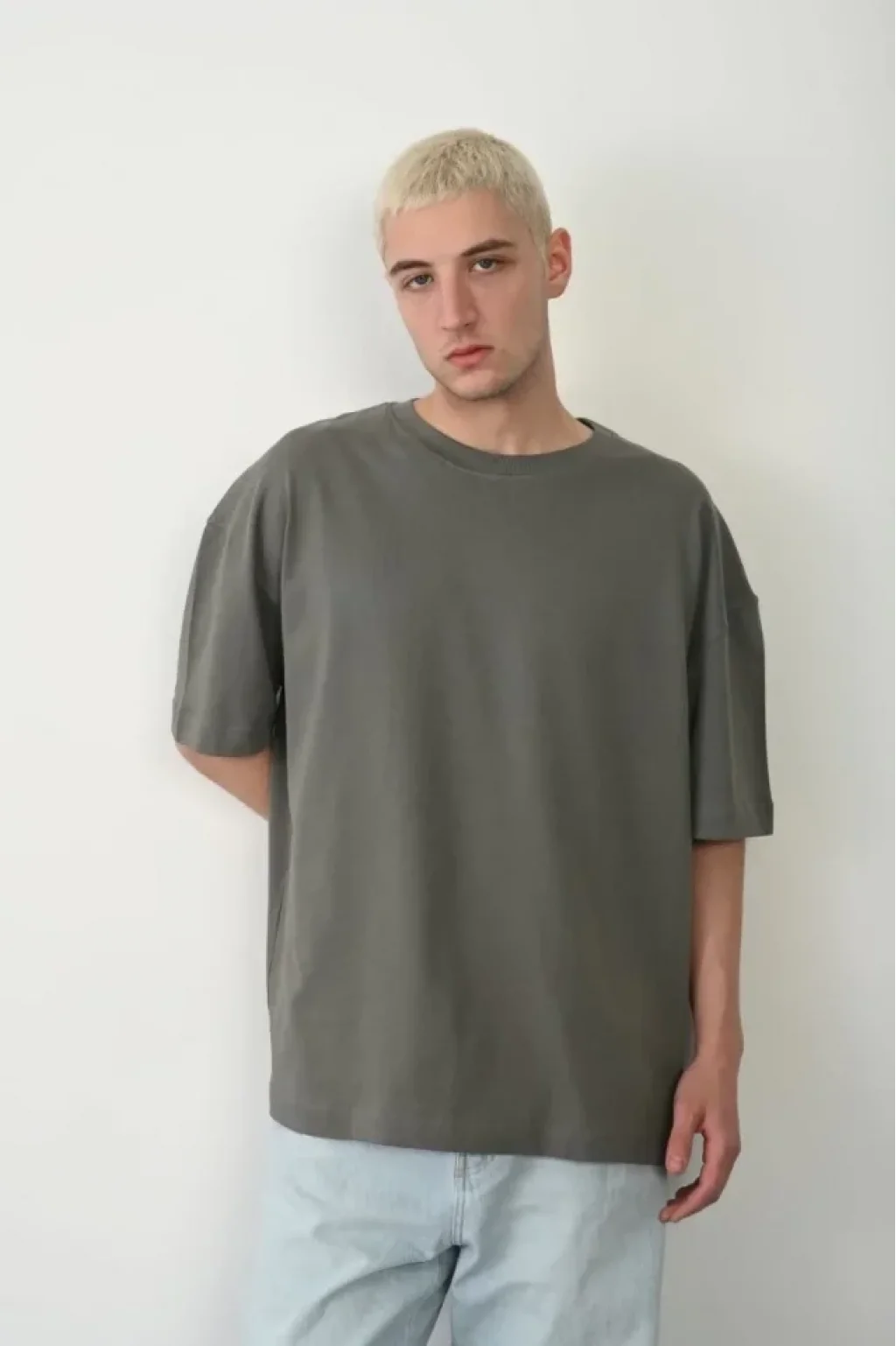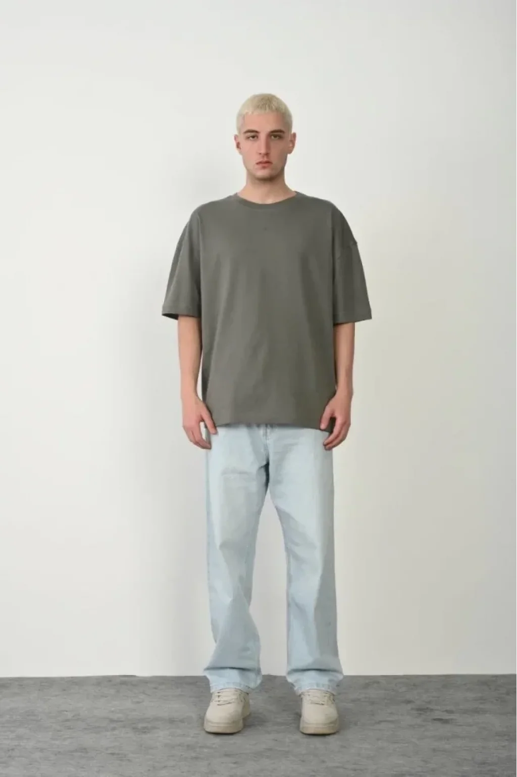 Unisex Basic Bisiklet Yaka Oversize T-Shirt - Füme