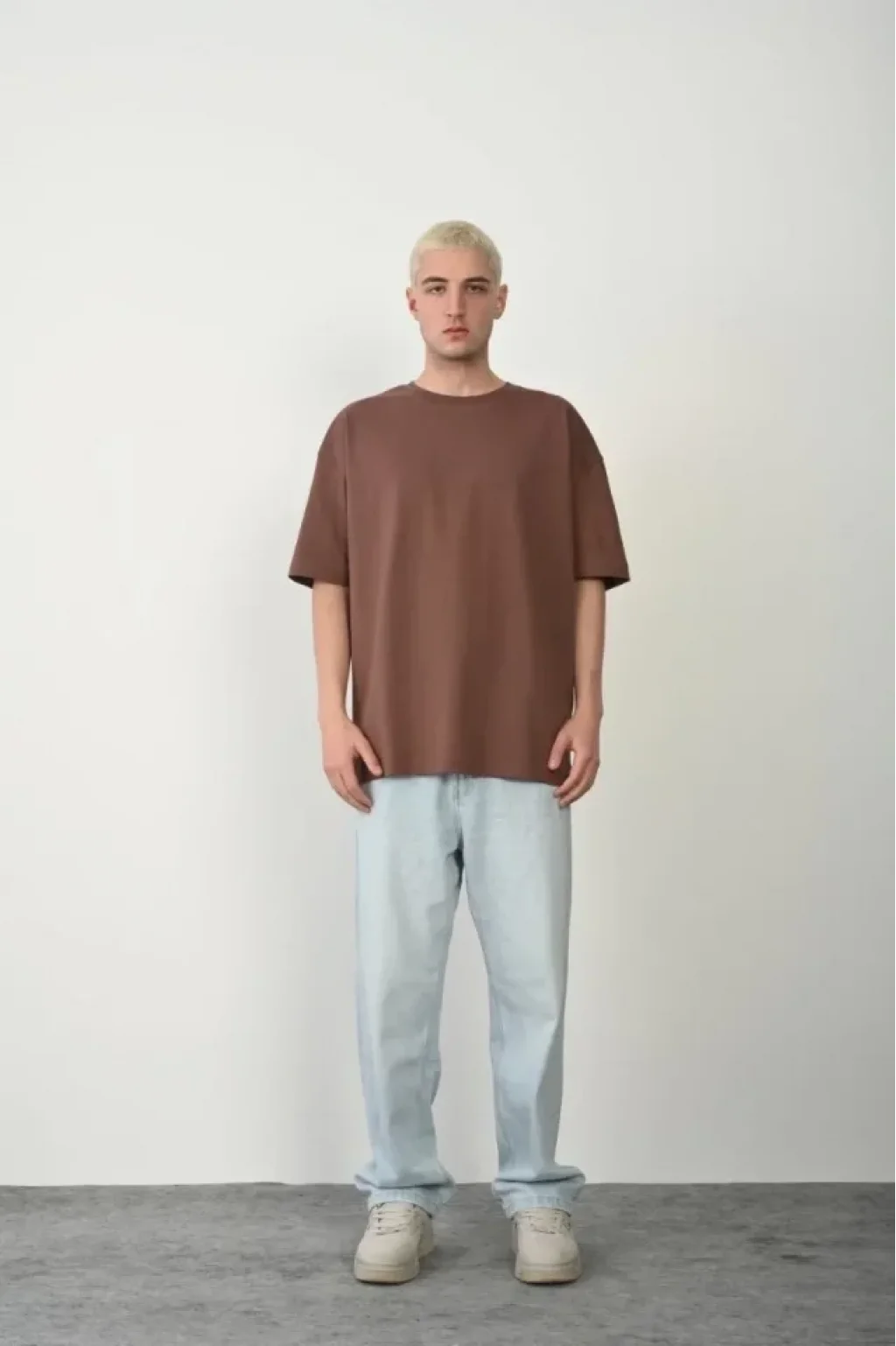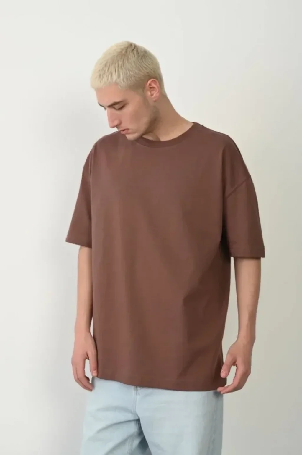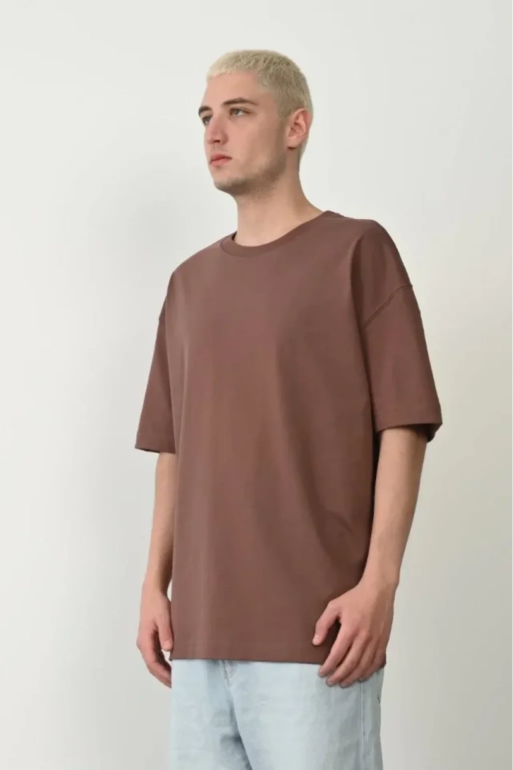 Unisex Basic Bisiklet Yaka Oversize T-Shirt - Mürdüm
