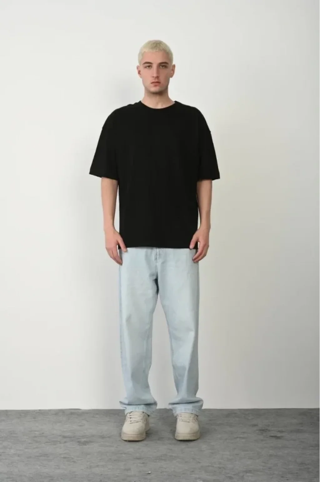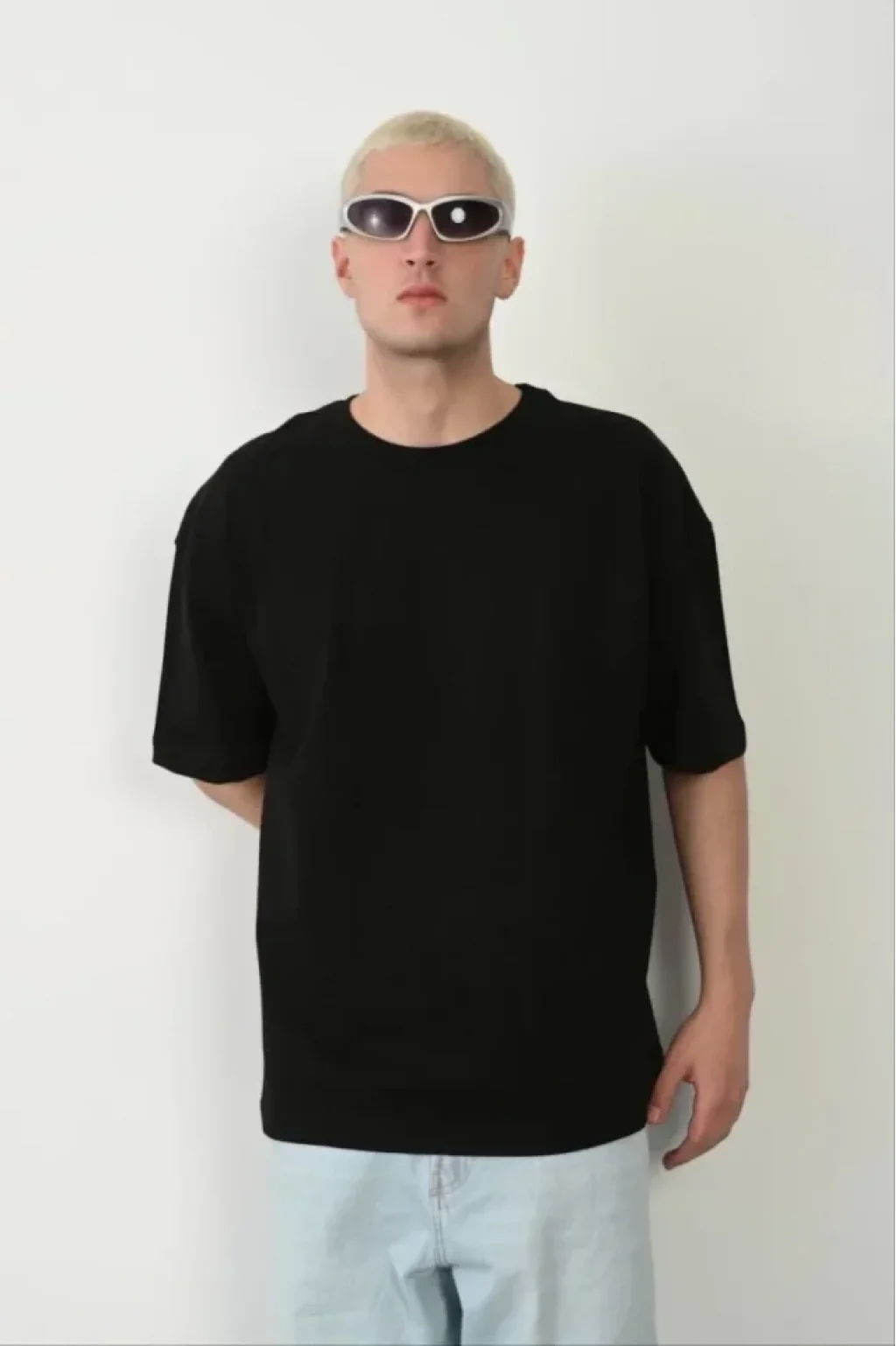 Unisex Basic Bisiklet Yaka Oversize T-Shirt - Siyah