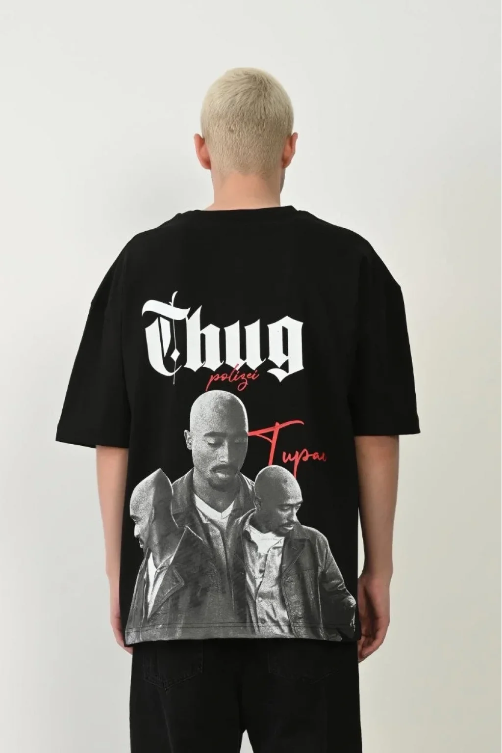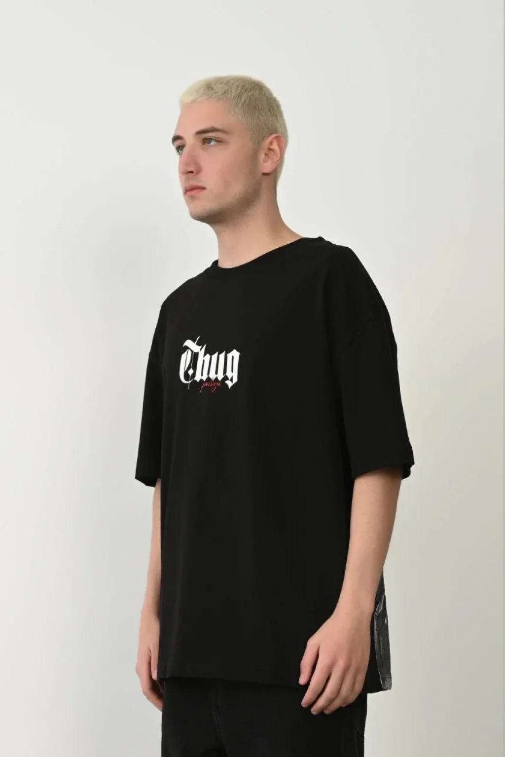 Unisex Baskılı Bisiklet Yaka Oversize T-Shirt - Siyah