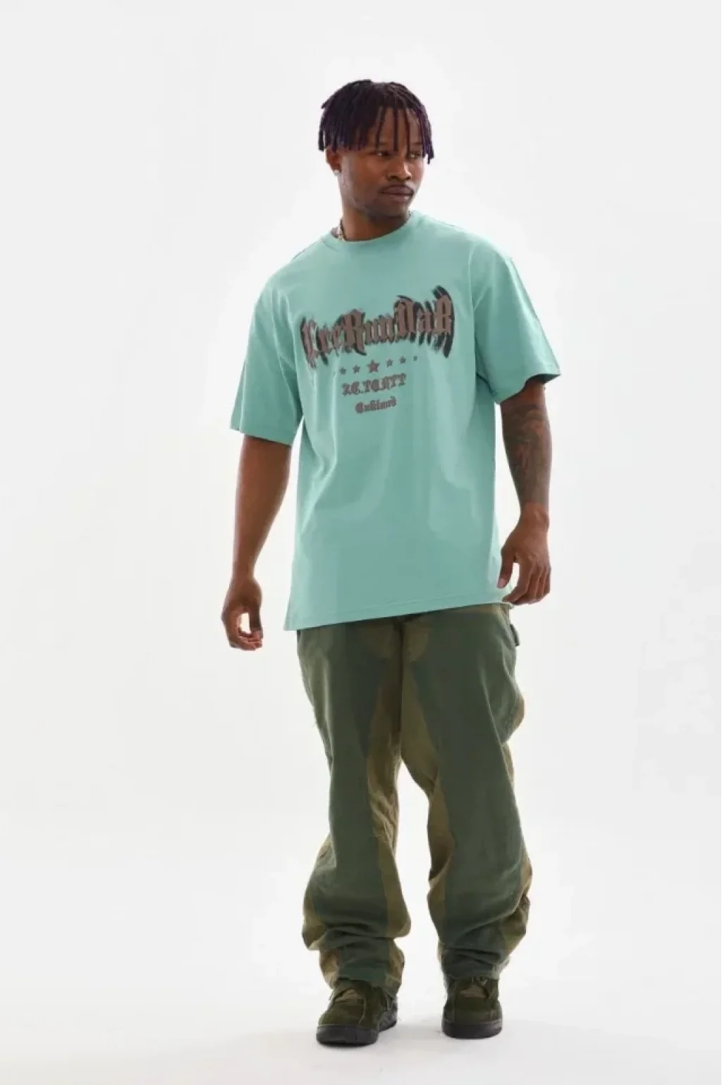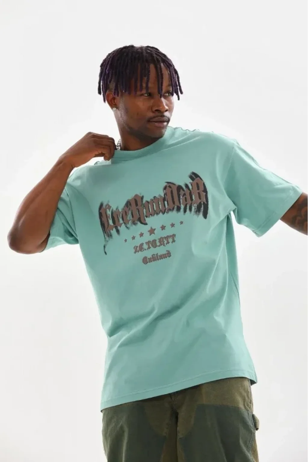 Unisex Baskılı Oversize T-Shirt - Mint Yeşili