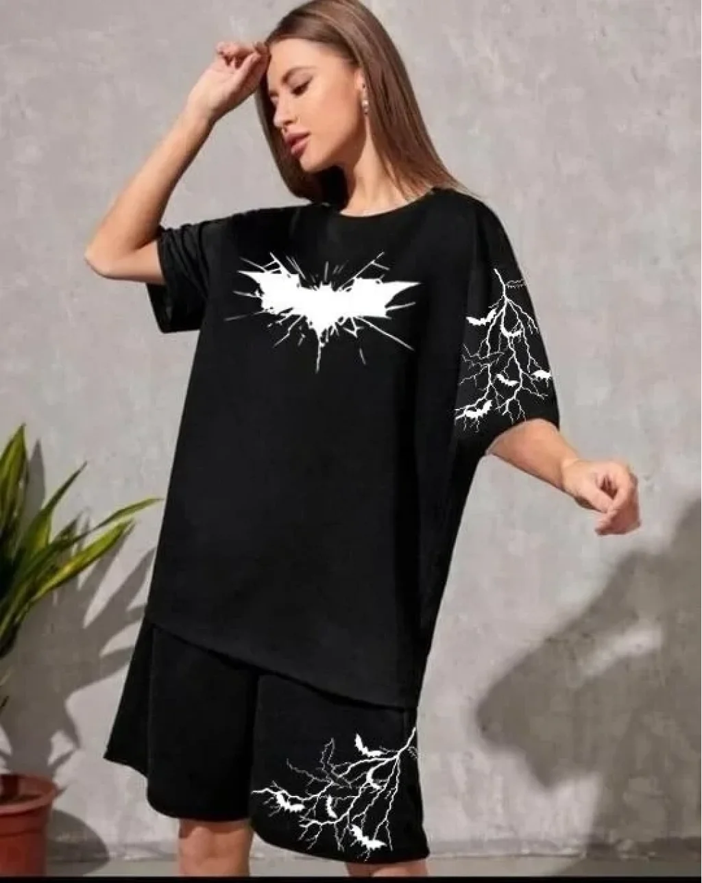 Unisex Baskılı Şortlu Takım - Siyah
