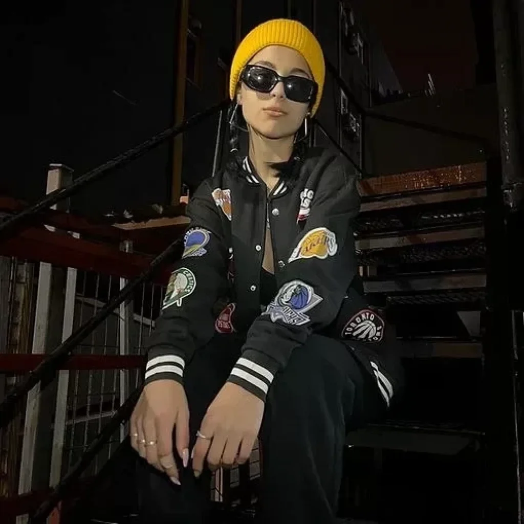 Unisex Baskılı Uzun Kol Kolej Ceket - Siyah