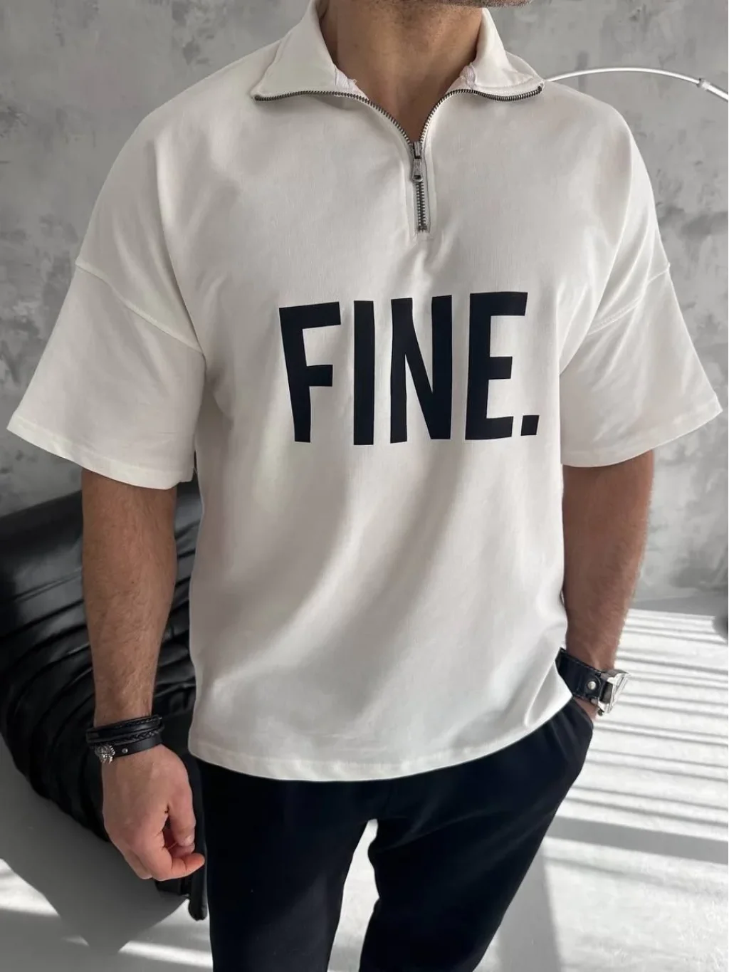 • Unisex Baskılı Yarım Fermuarlı T-Shirt - Beyaz