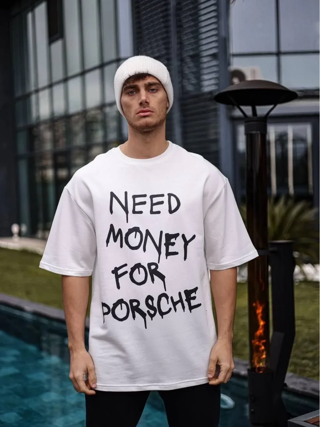 Unisex Bisiklet Yaka Baskılı Oversize T-Shirt - Beyaz