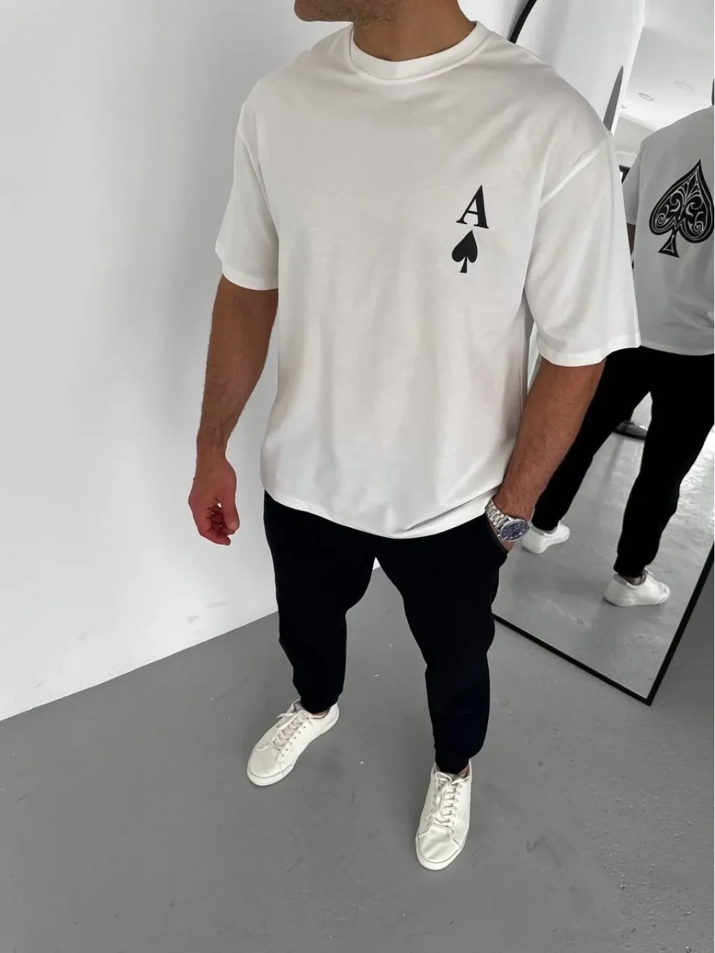 Unisex Bisiklet Yaka Baskılı Oversize T-Shirt - Beyaz