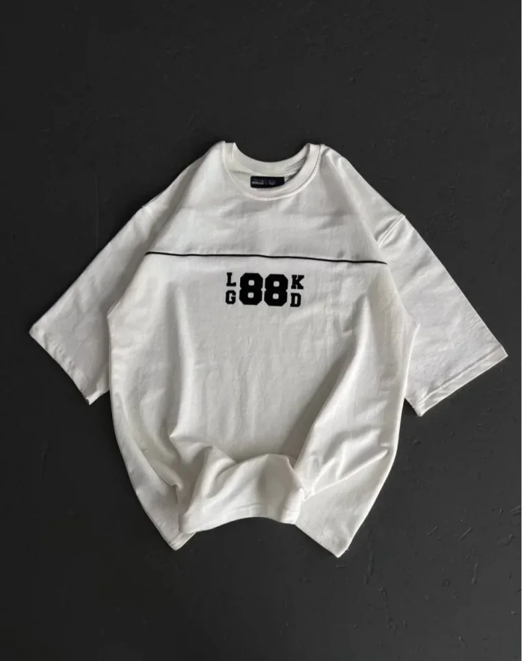 Unisex Bisiklet Yaka Baskılı Oversize T-Shirt - Beyaz