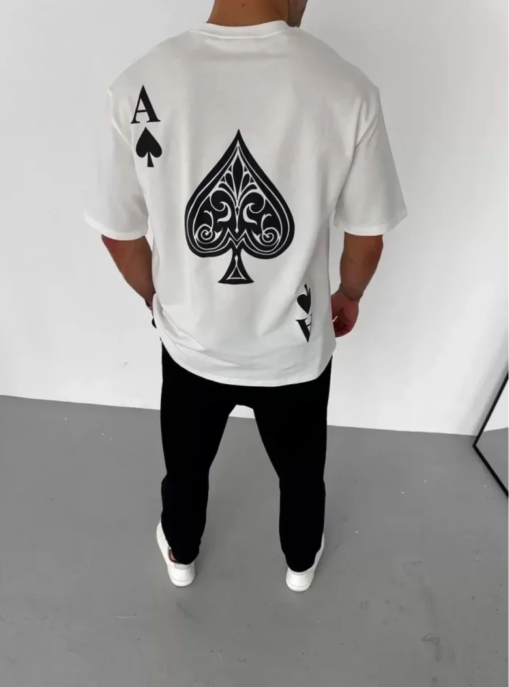 Unisex Bisiklet Yaka Baskılı Oversize T-Shirt - Beyaz