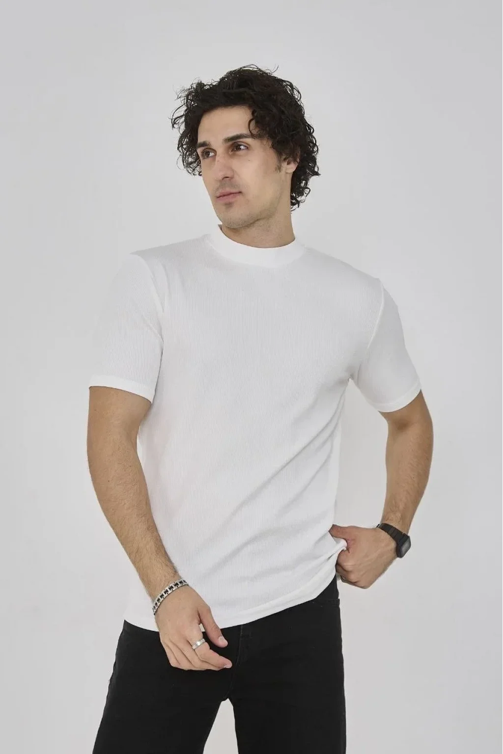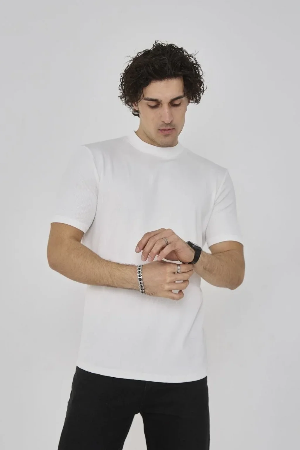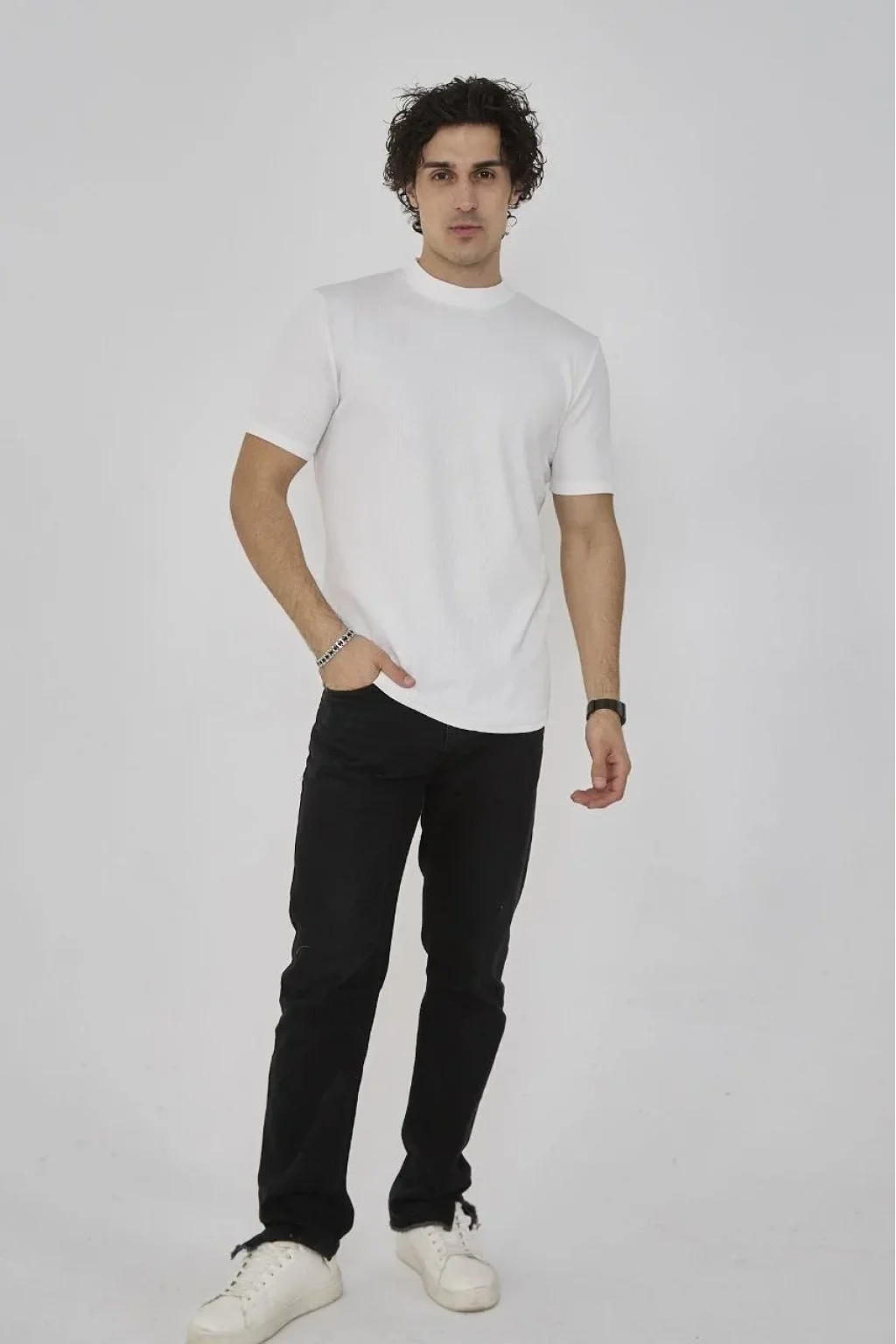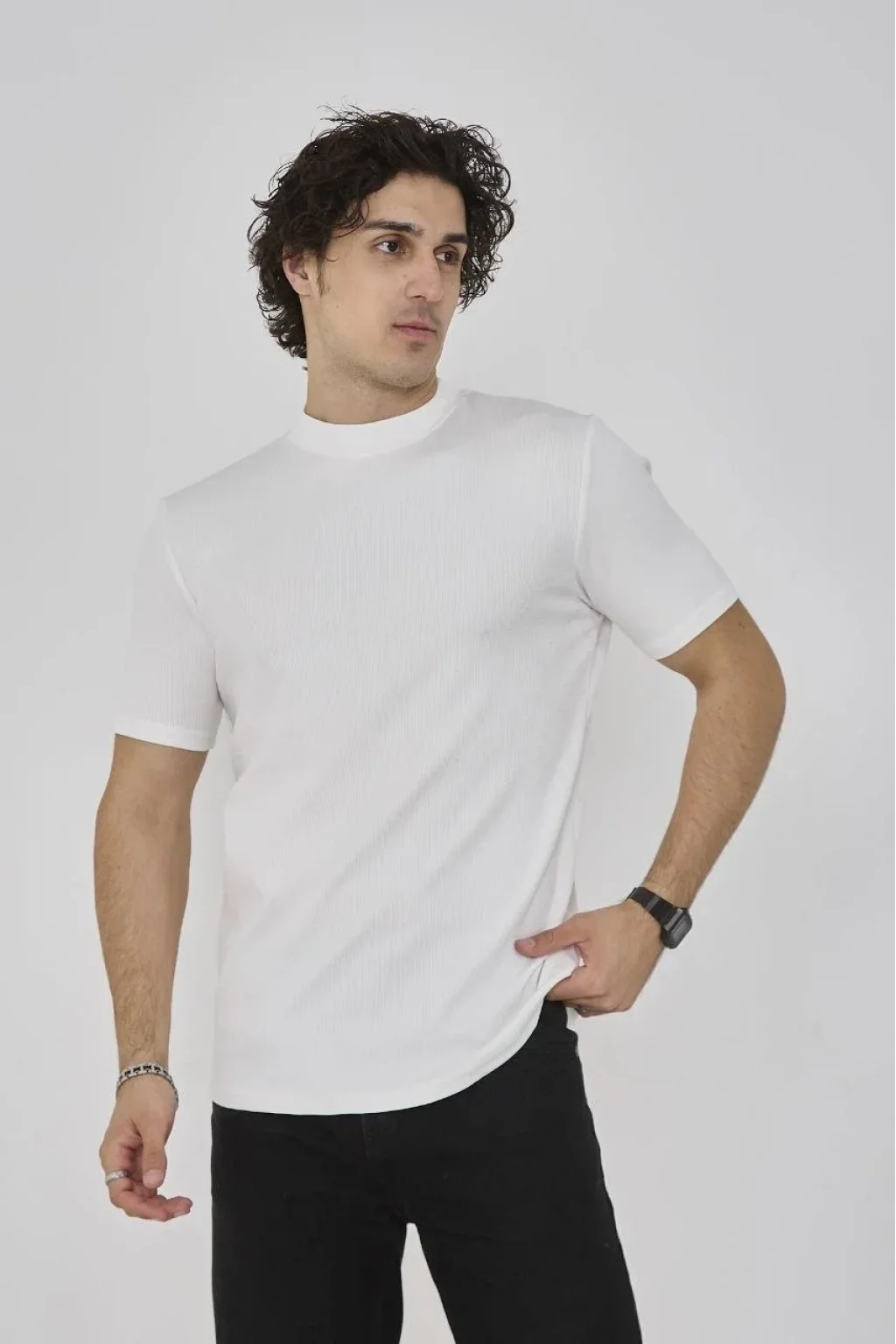 Unisex Bisiklet Yaka Slim fit T-Shirt - Beyaz