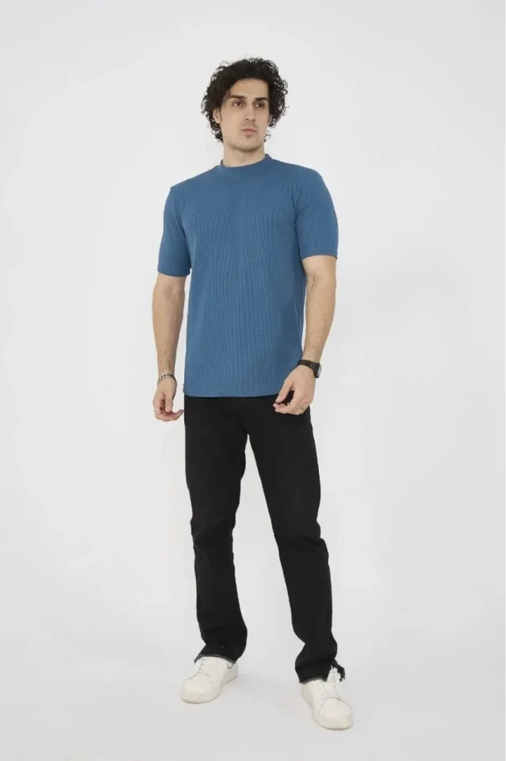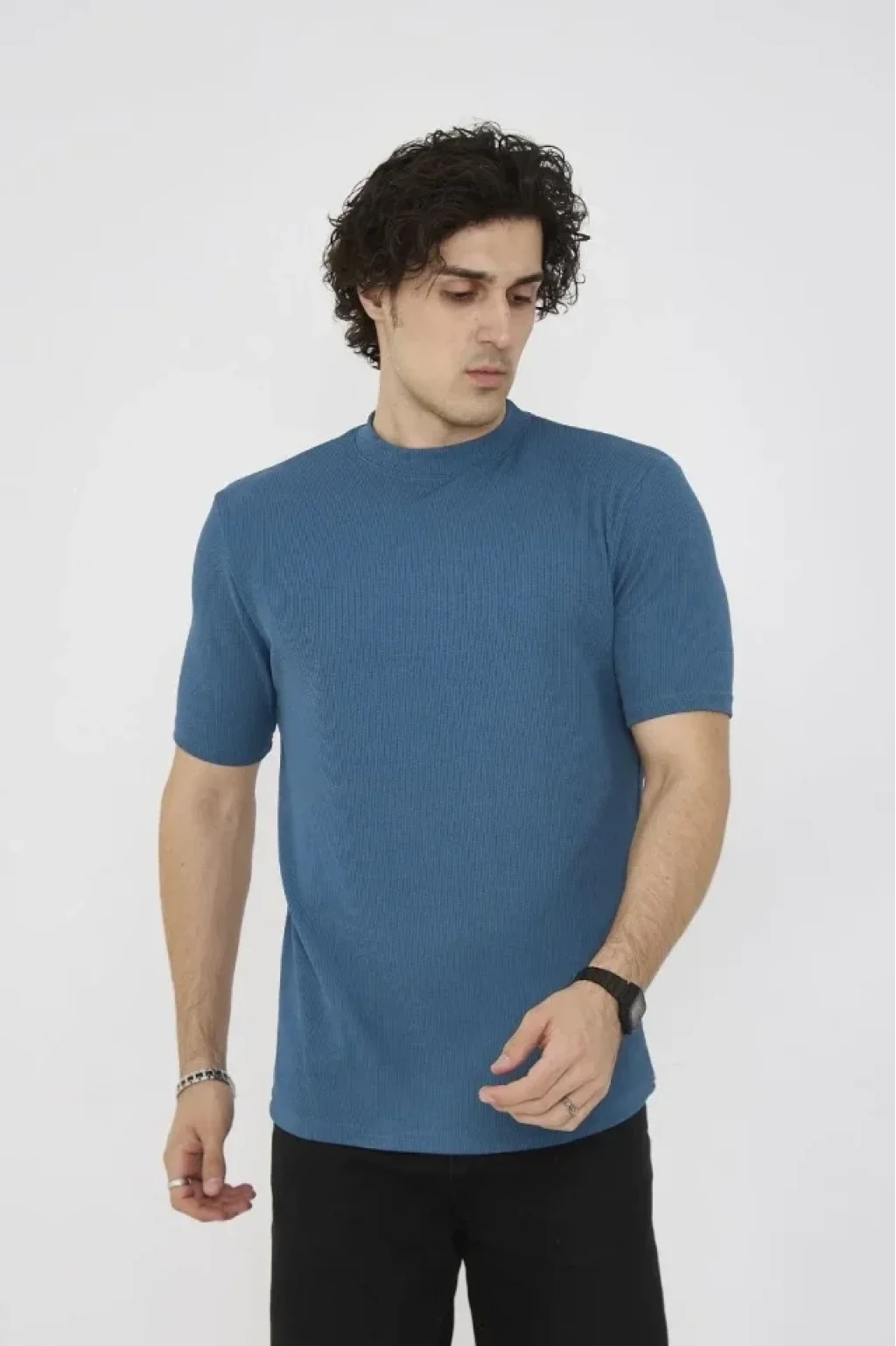 Unisex Bisiklet Yaka Slim Fit T-Shirt- Turkuaz