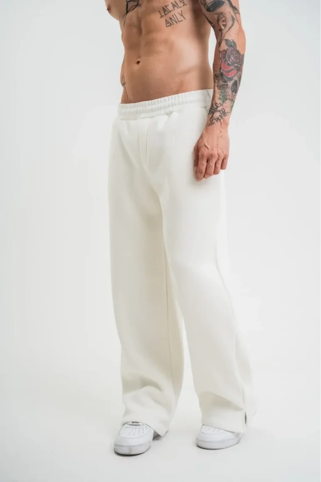 Unisex Boru Paça Baggy Eşofman Pantolon - Beyaz