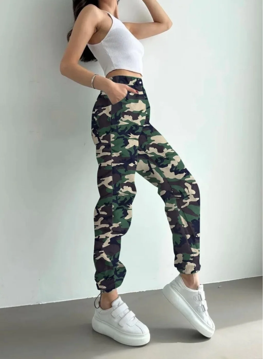 Unisex Ceplı Paraşut Kamuflaj Pantolon - Askeri