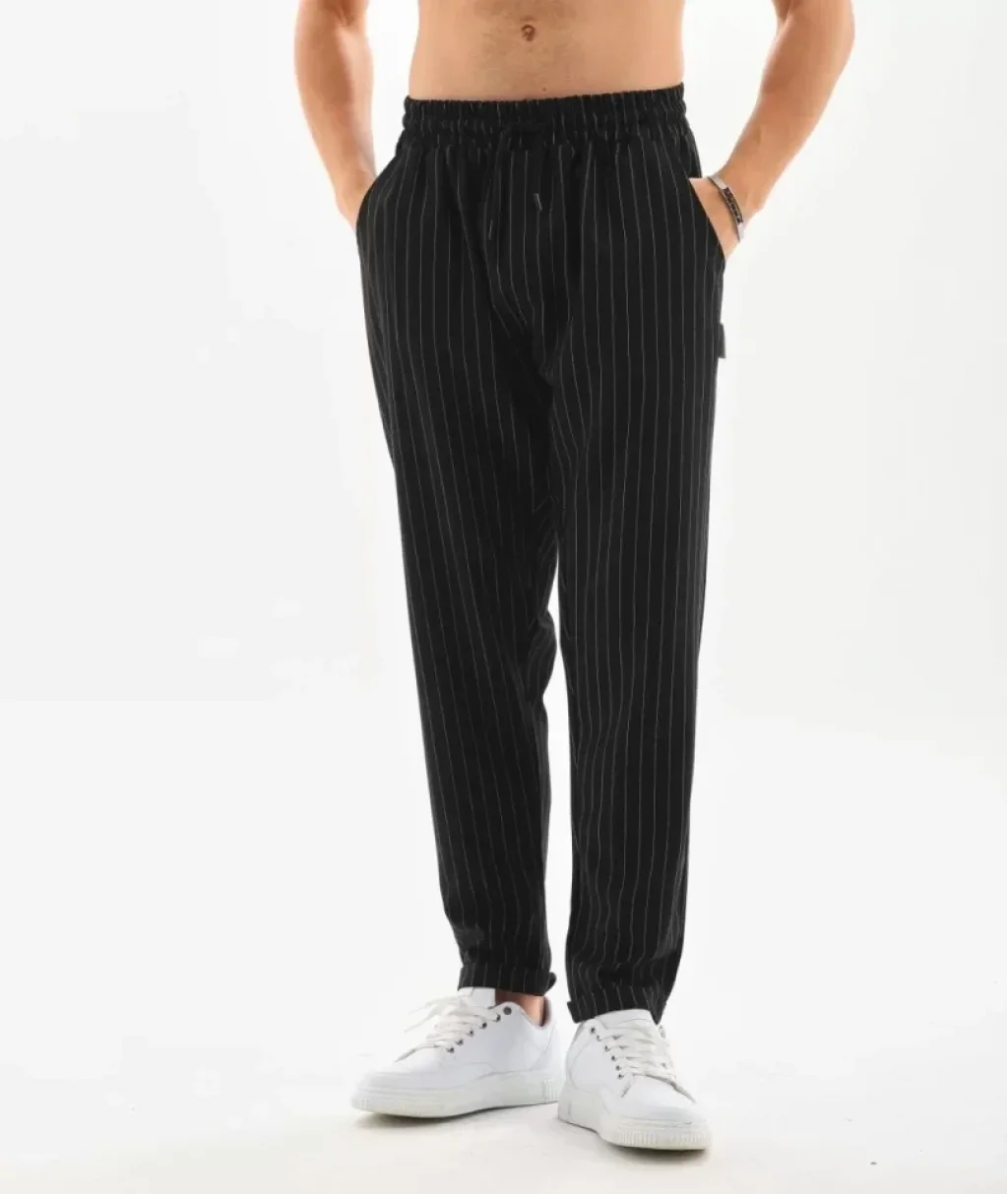Unisex Çizgili Eşofman Altı - Siyah