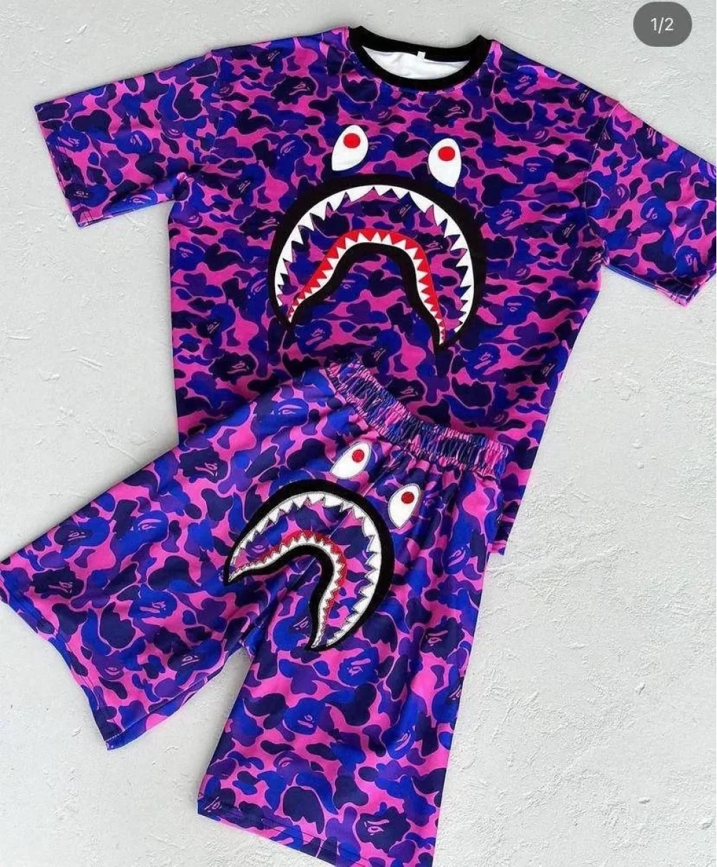 Unisex Dijital Baskılı Şortlu Takım - Mor
