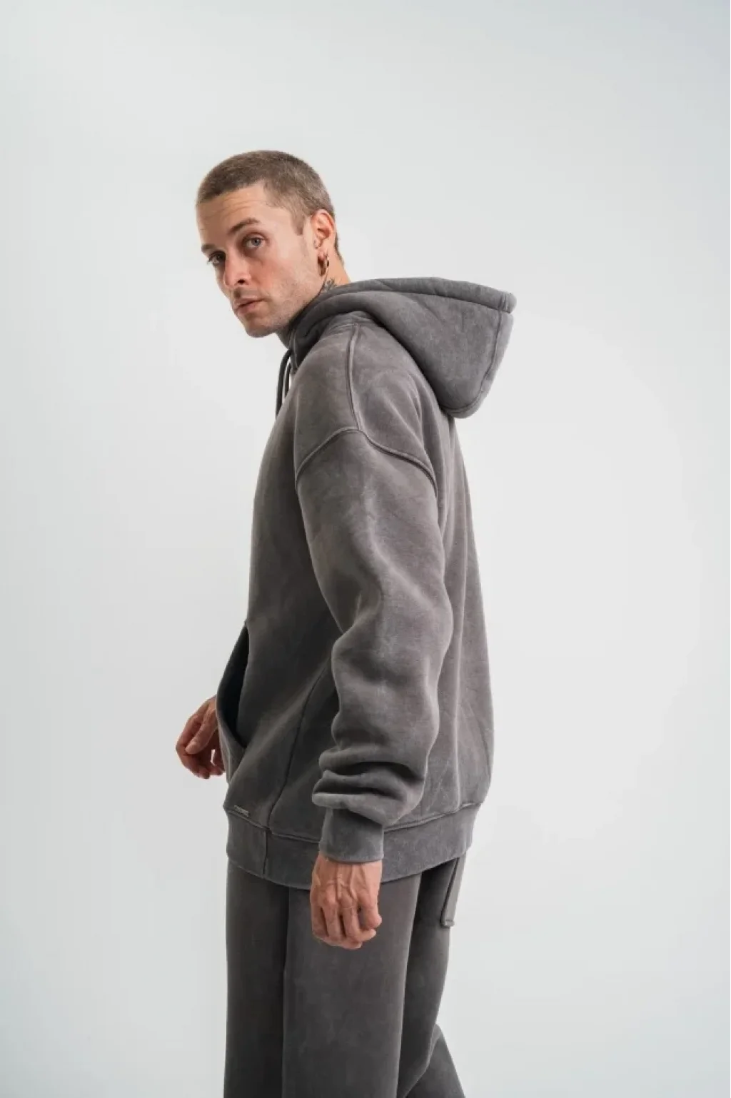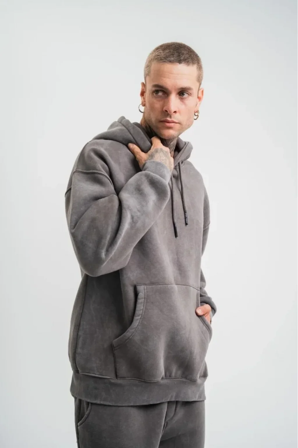 Unisex Double Oversize Kapşonlu Yıkamalı SweatShirt - Füme