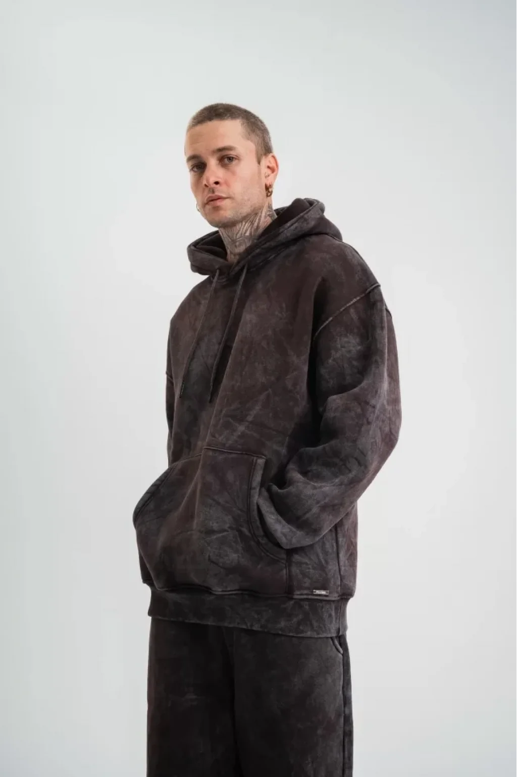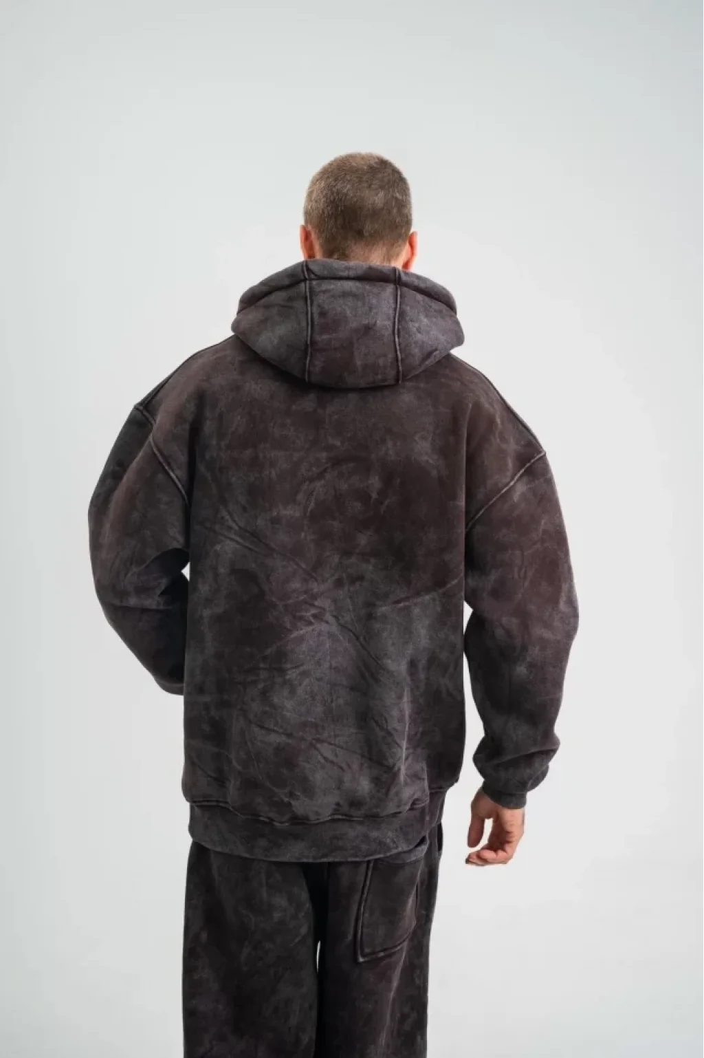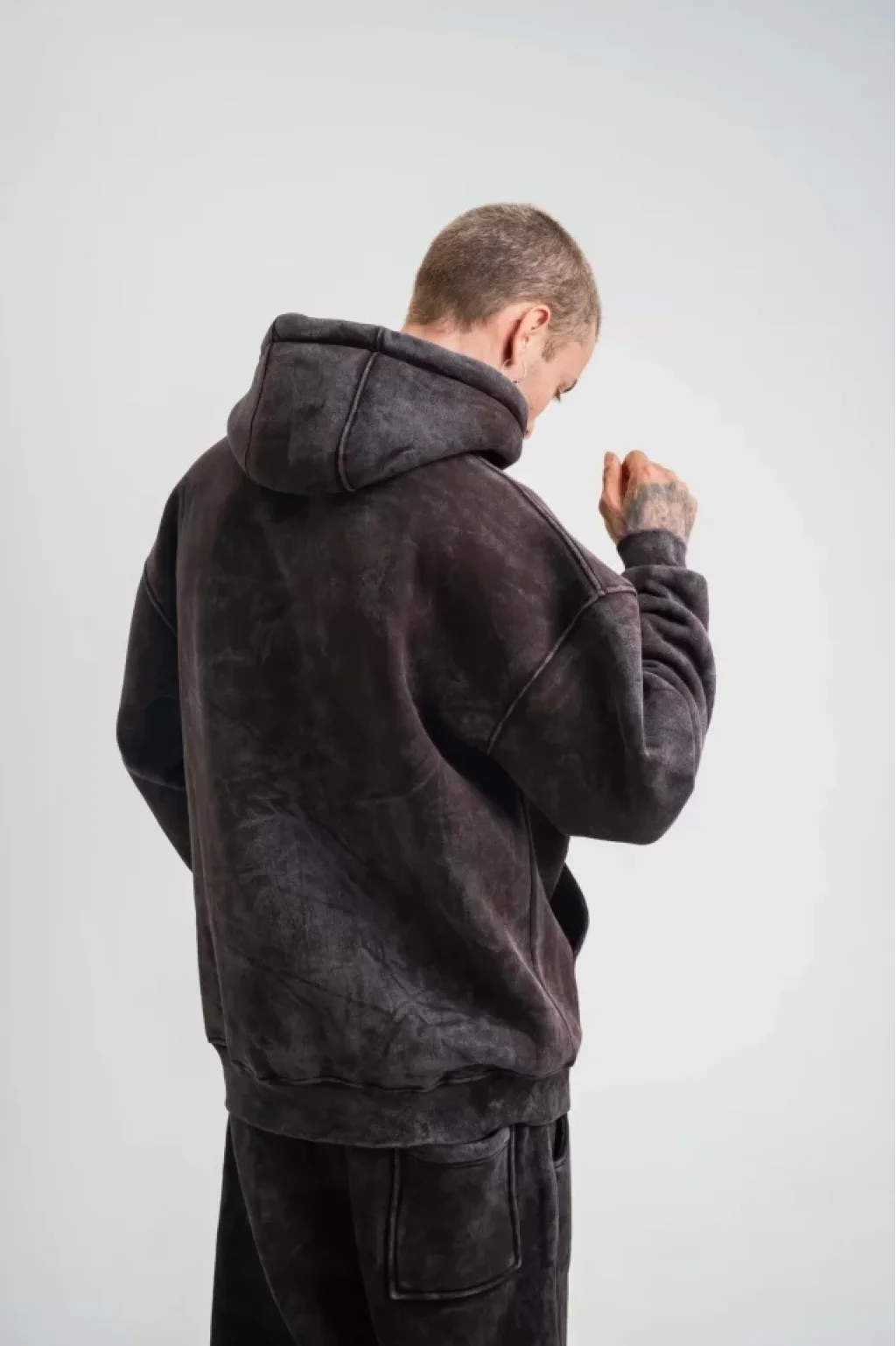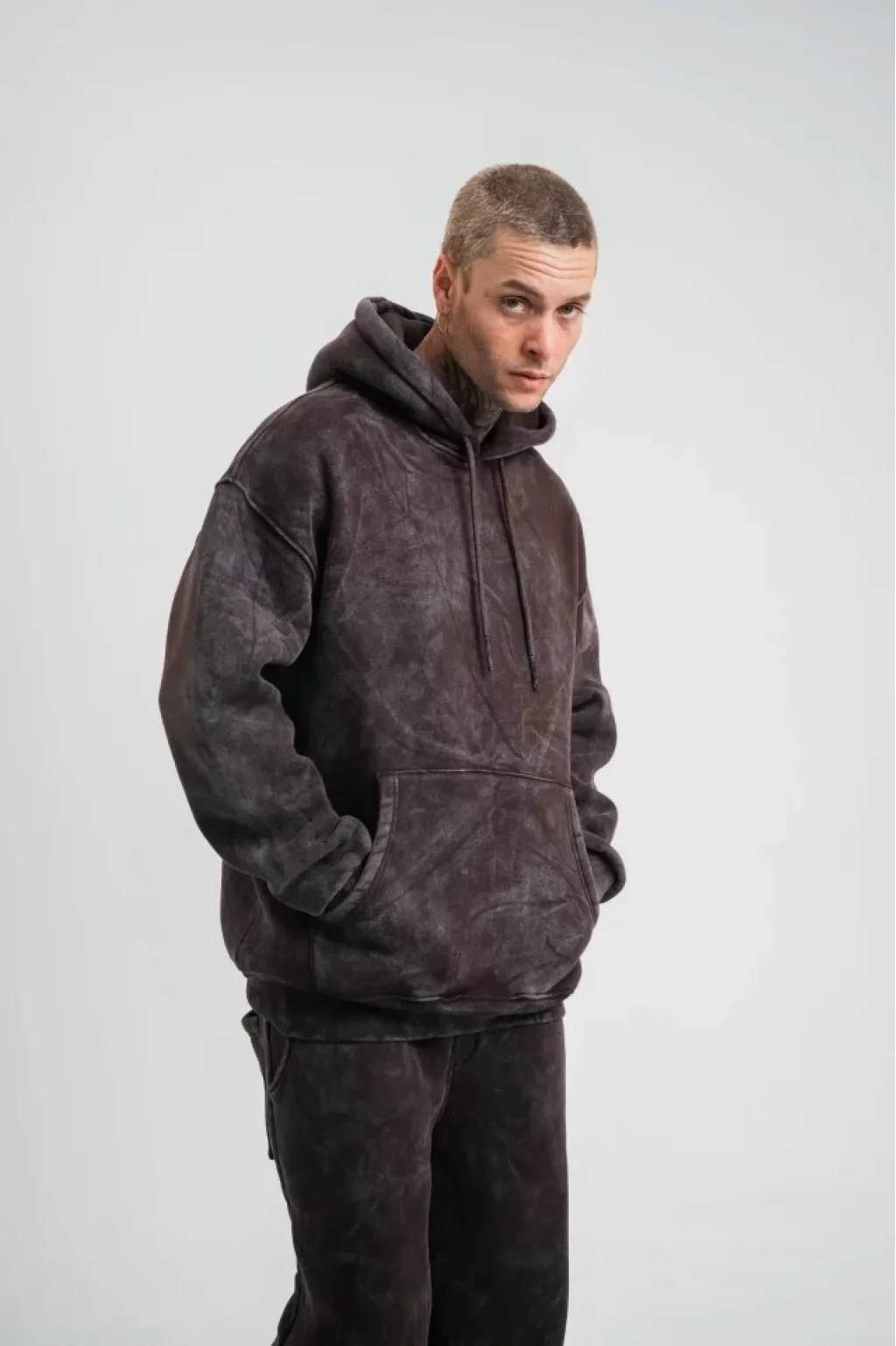 Unisex Double Oversize Kapşonlu Yıkamalı SweatShirt - Kahve