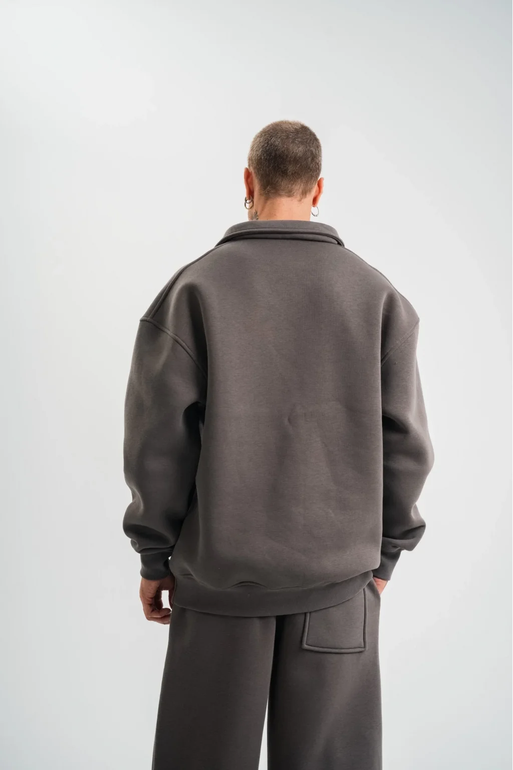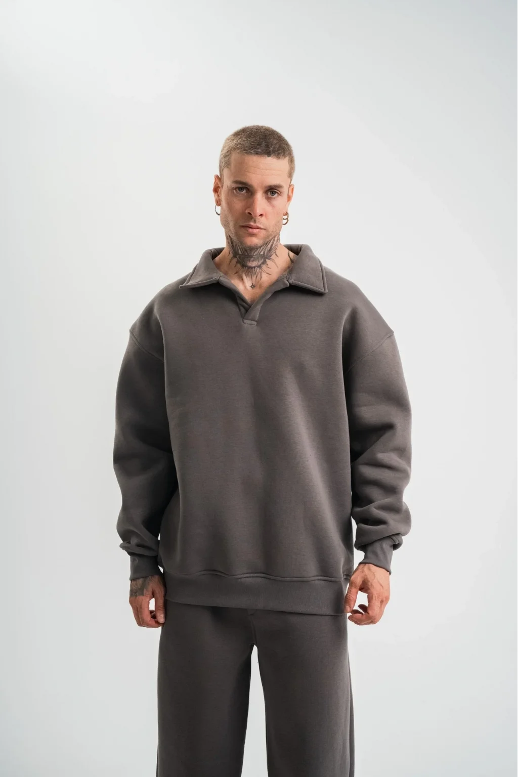 Unisex Double Oversize Patlı Yaka SweatShirt - Füme