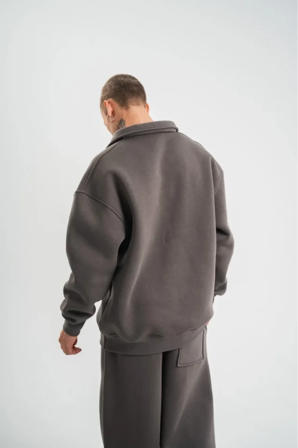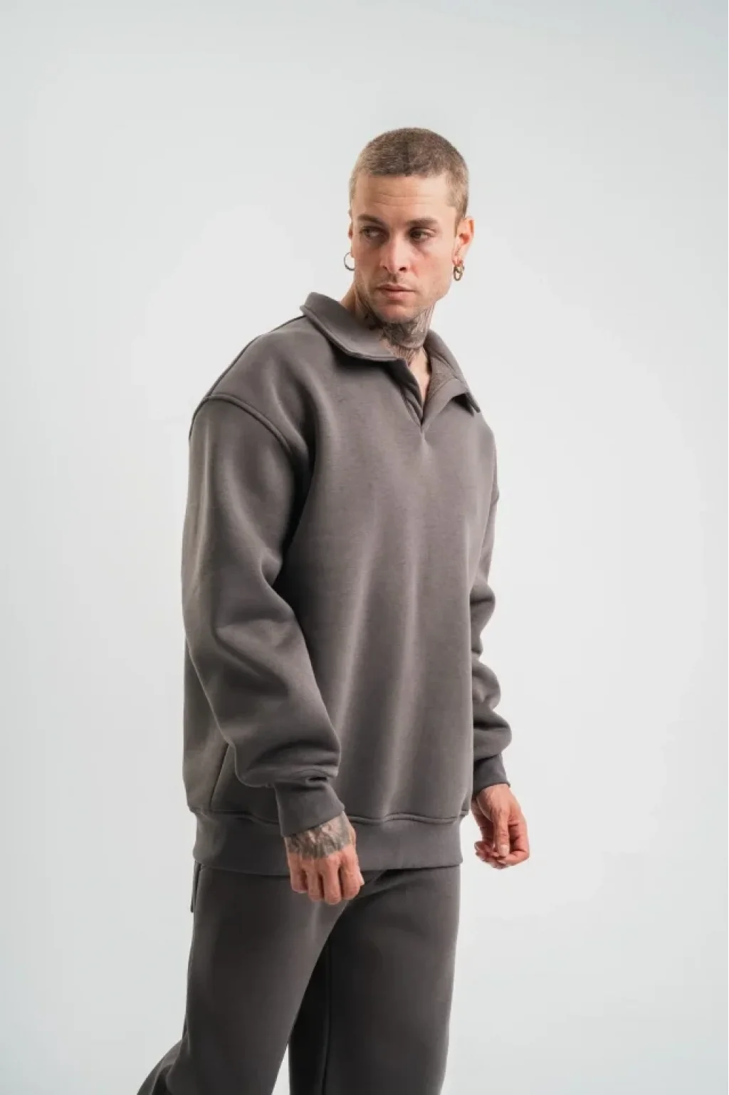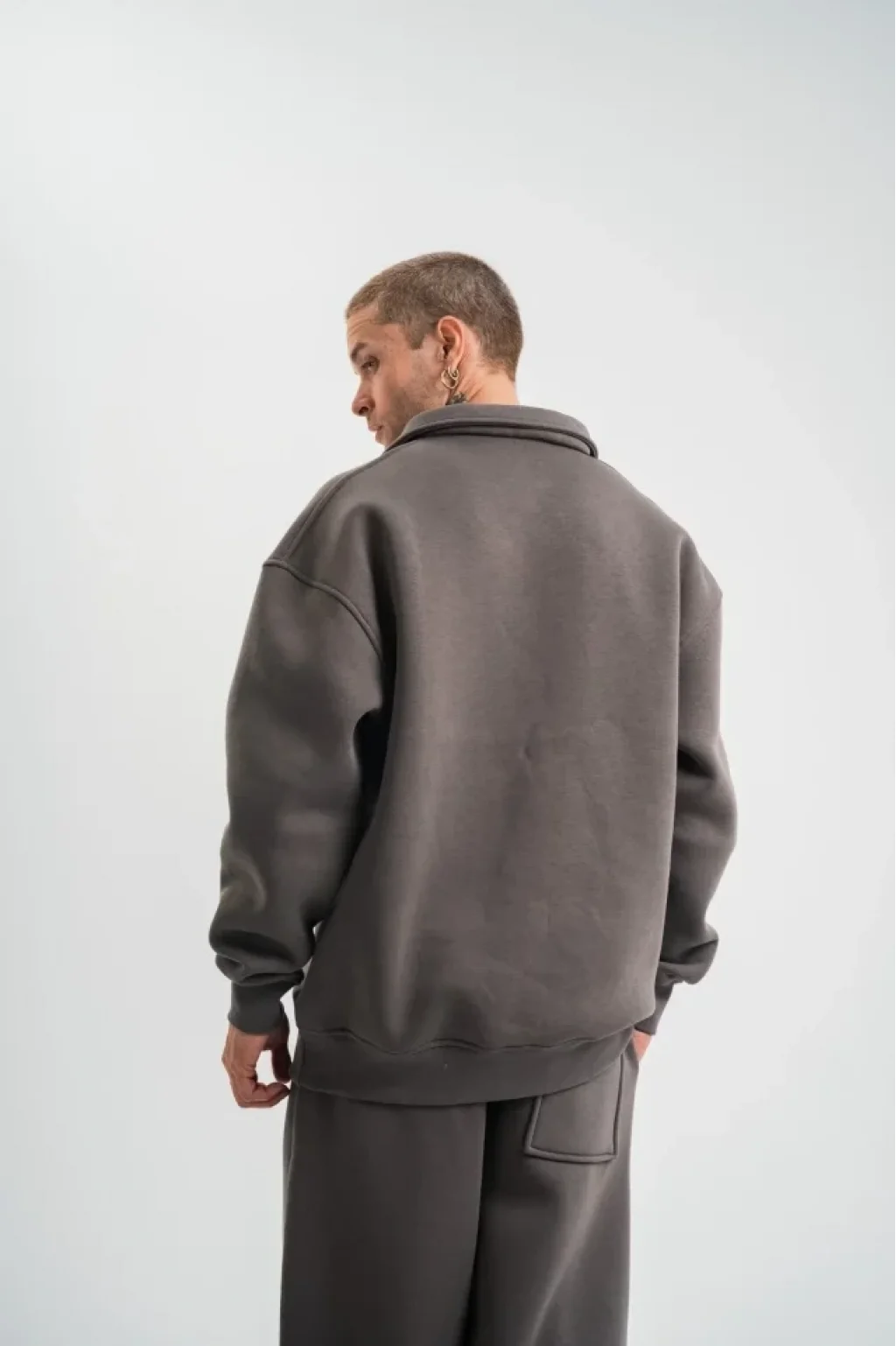 Unisex Double Oversize Patlı Yaka SweatShirt - Füme