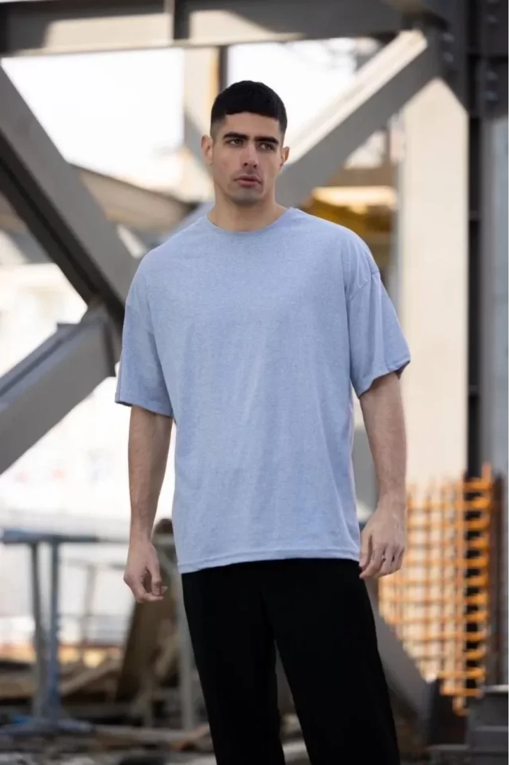 Unisex Düz Biskilet Yaka Oversize T-shirt - Gri