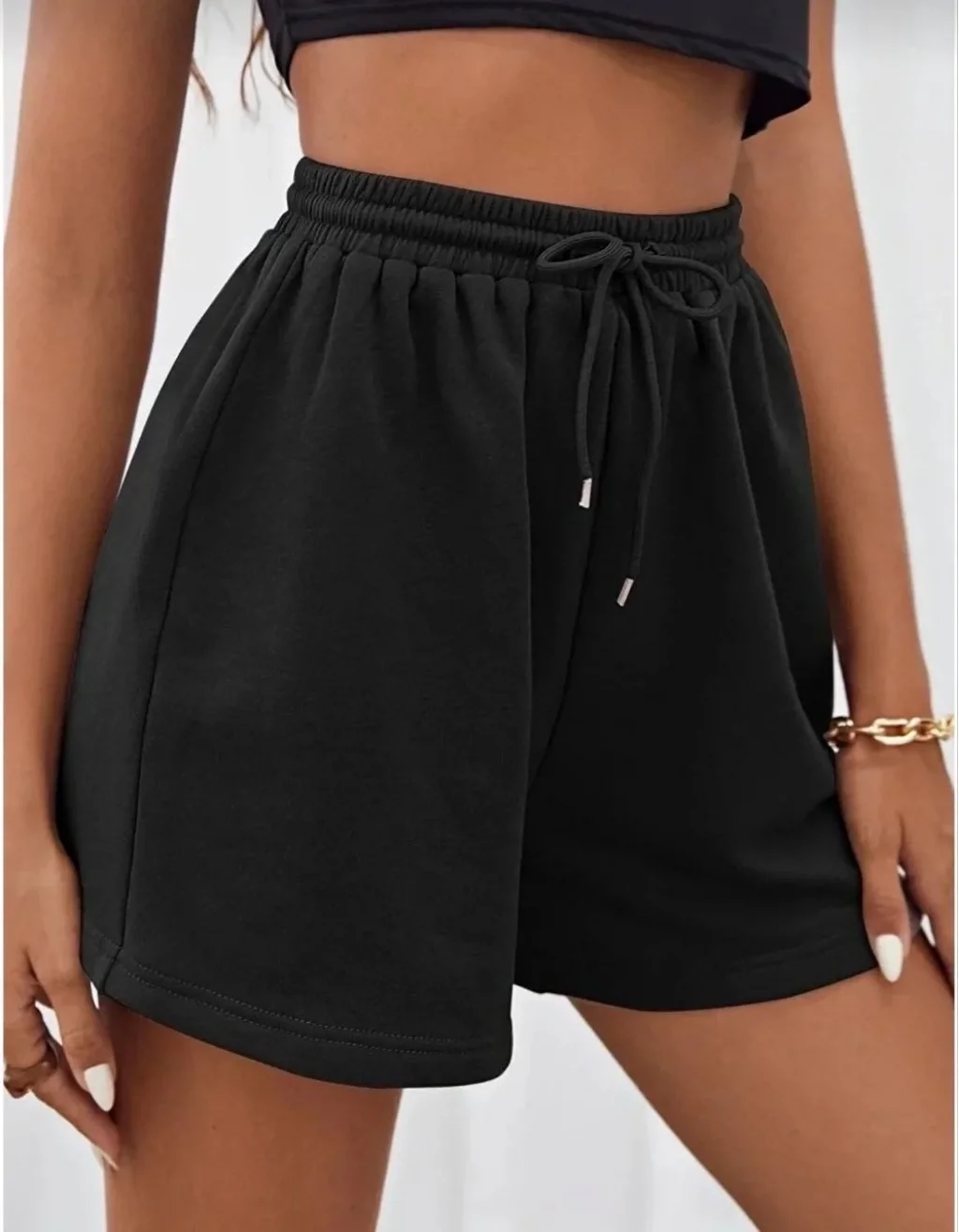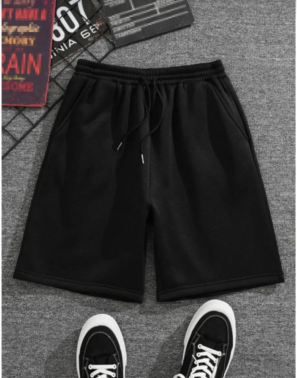 Unisex İki İplik Düz Oversize Şort - Siyah