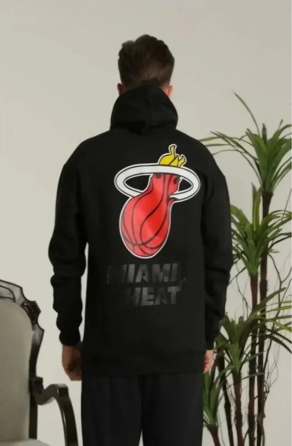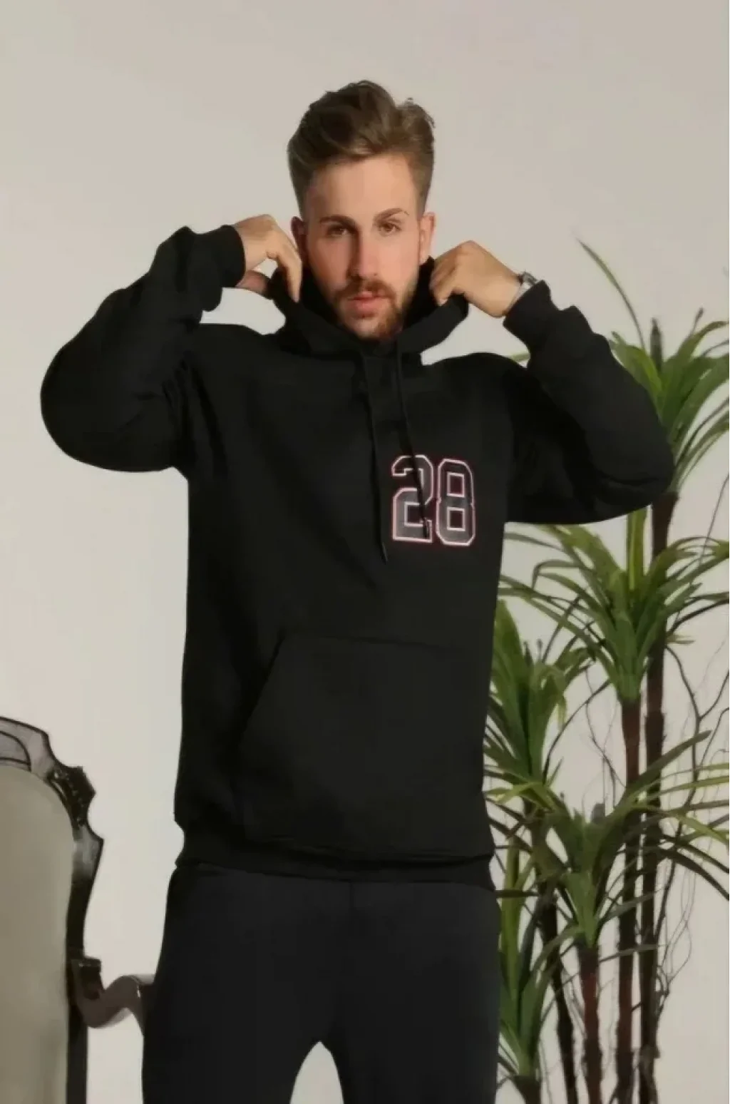 Unisex Kapşonlu Baskılı Sweetshirt - Siyah