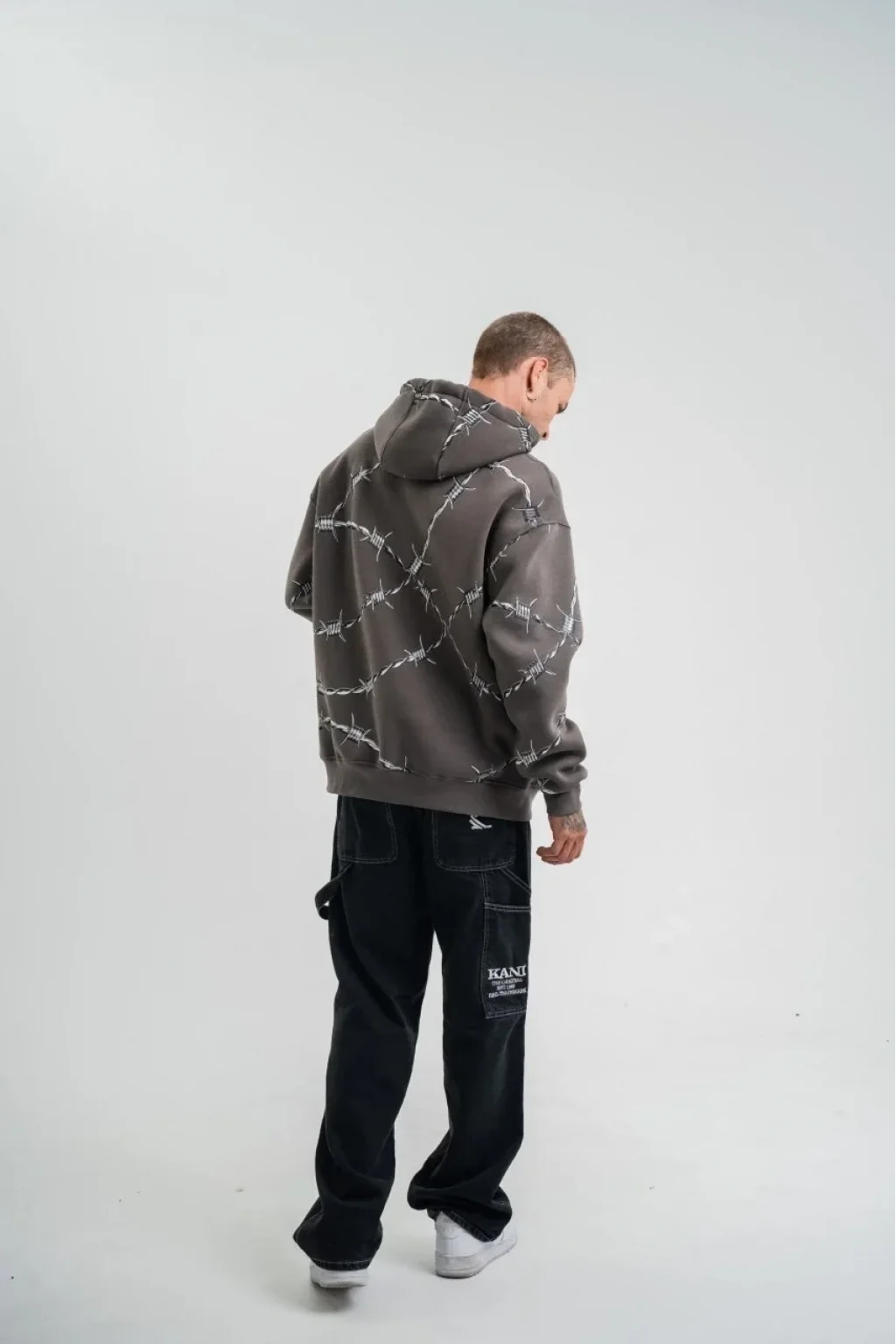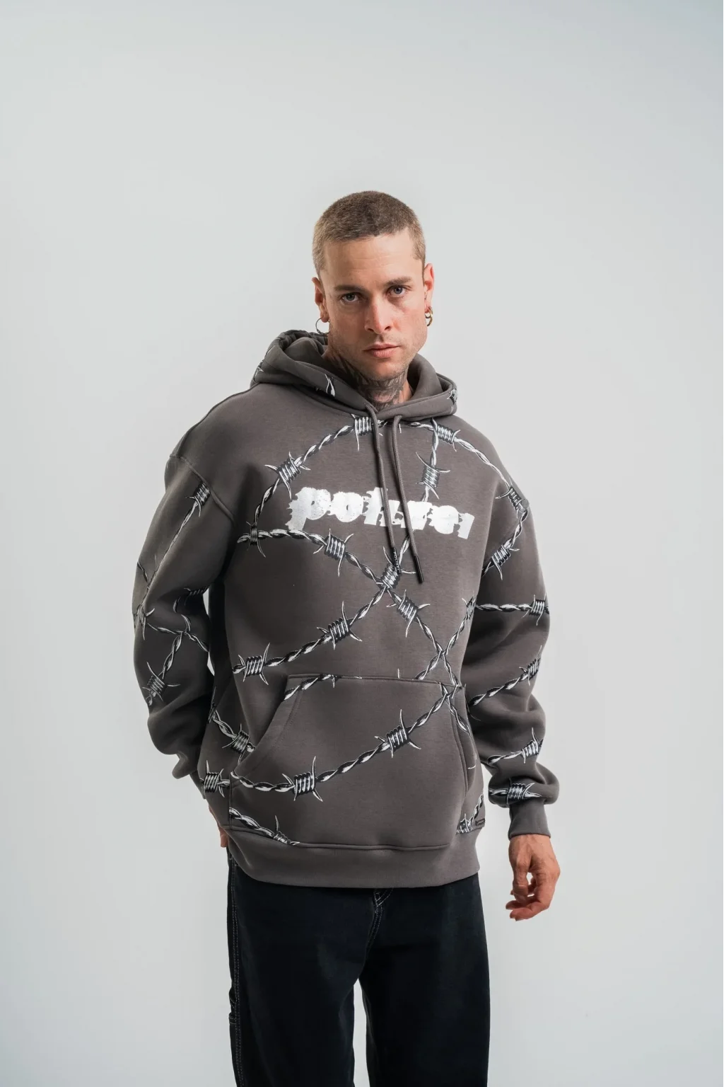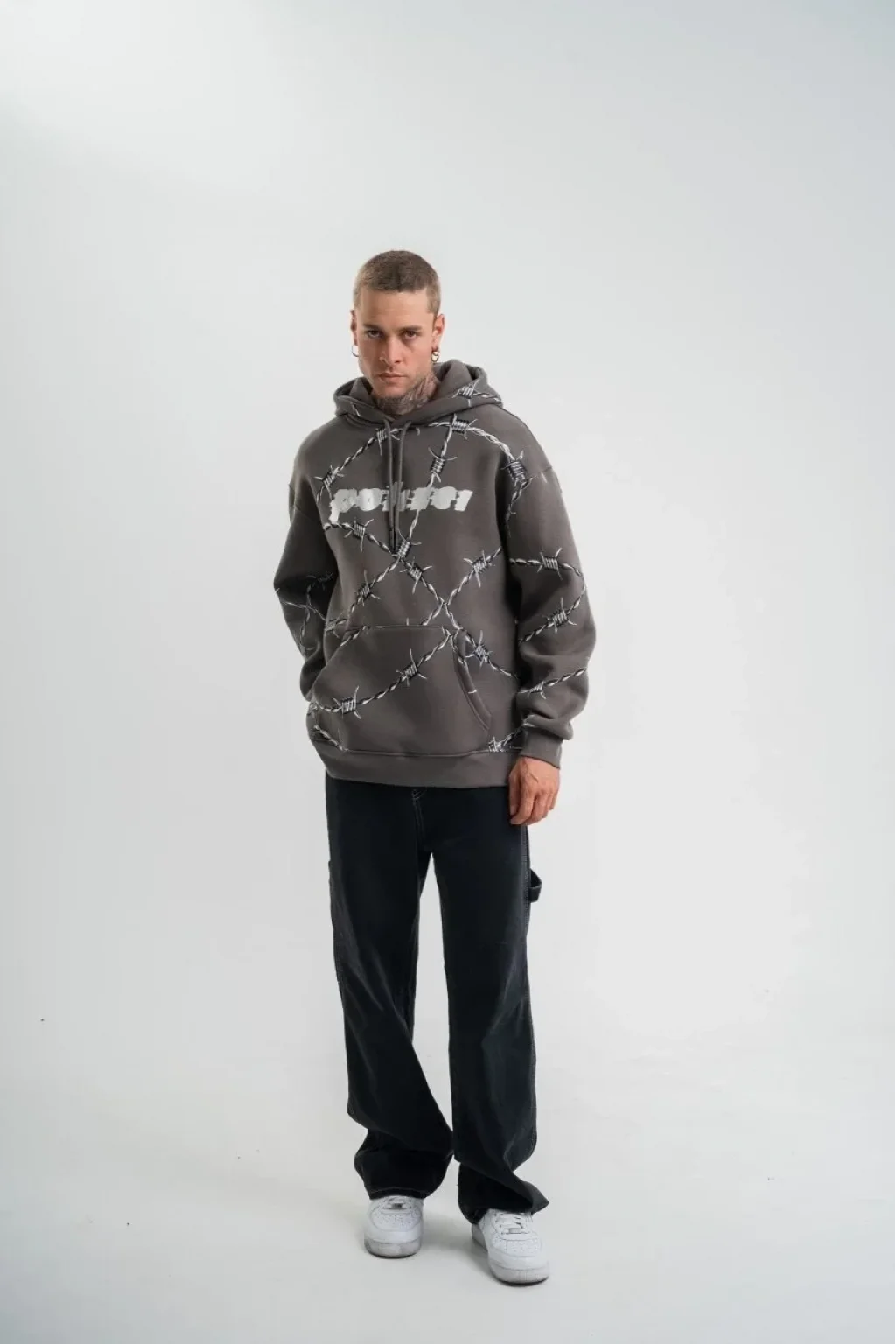 Unisex Kapşonlu Varak ve Pano Baskılı SweatShirt - Füme