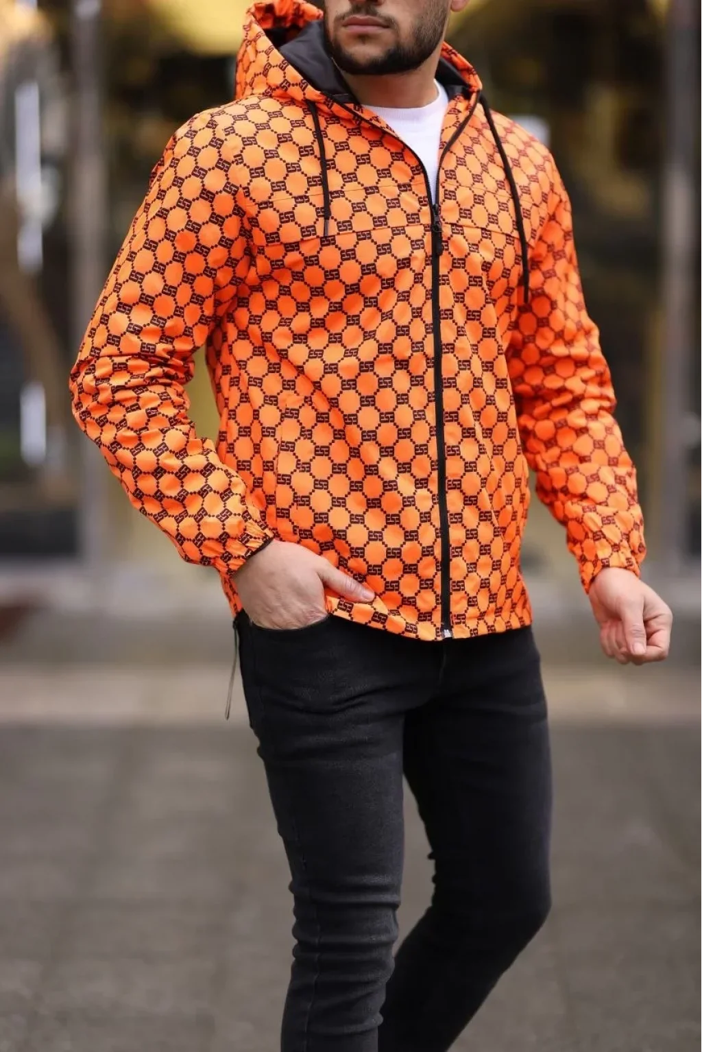 Unisex Kapüşonlu İçi Astarlı Yağmurluk - Turuncu