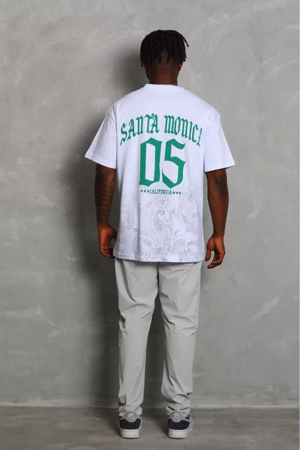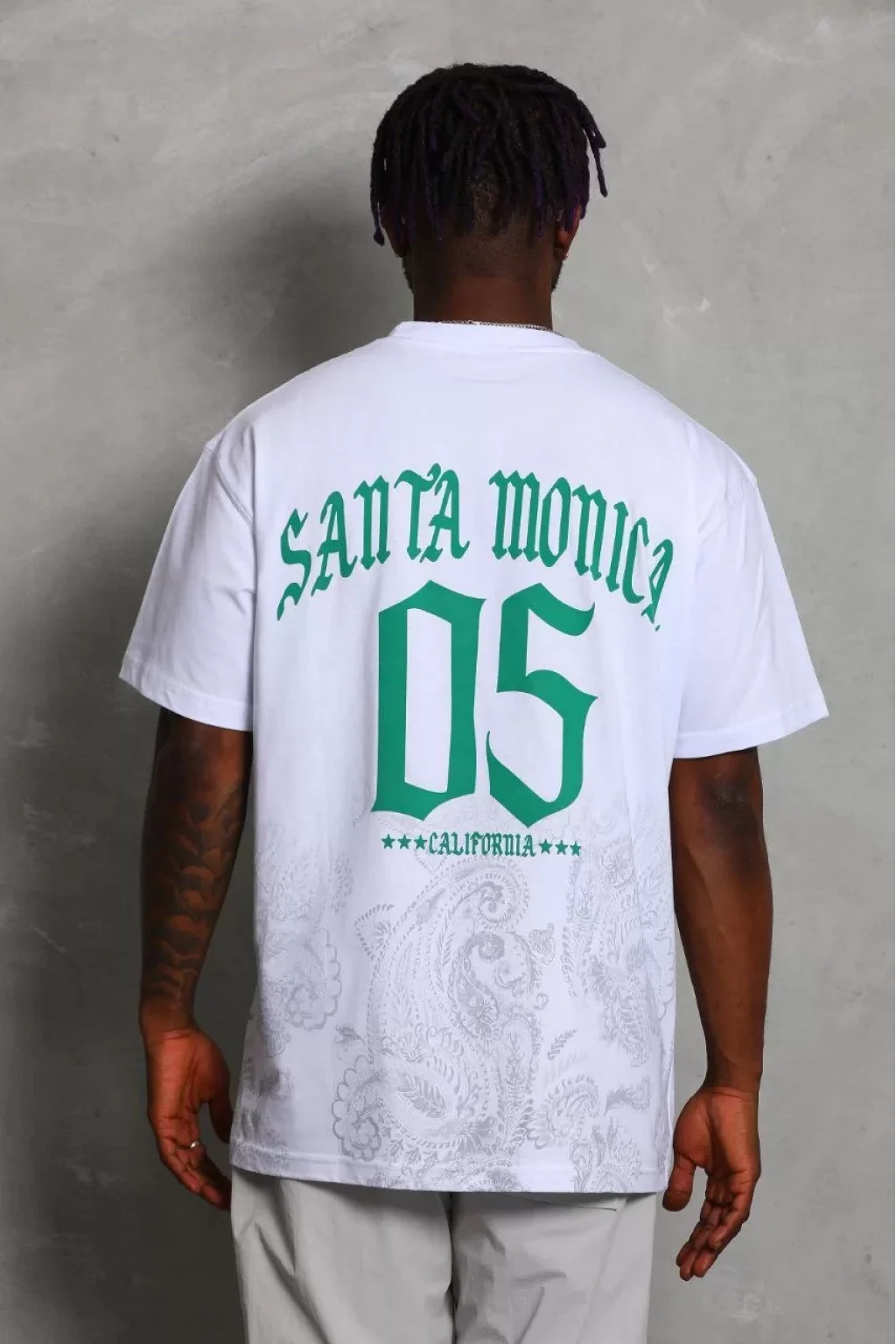 Unisex Oversize Baskılı Bisiklet Yaka T-Shirt - Beyaz