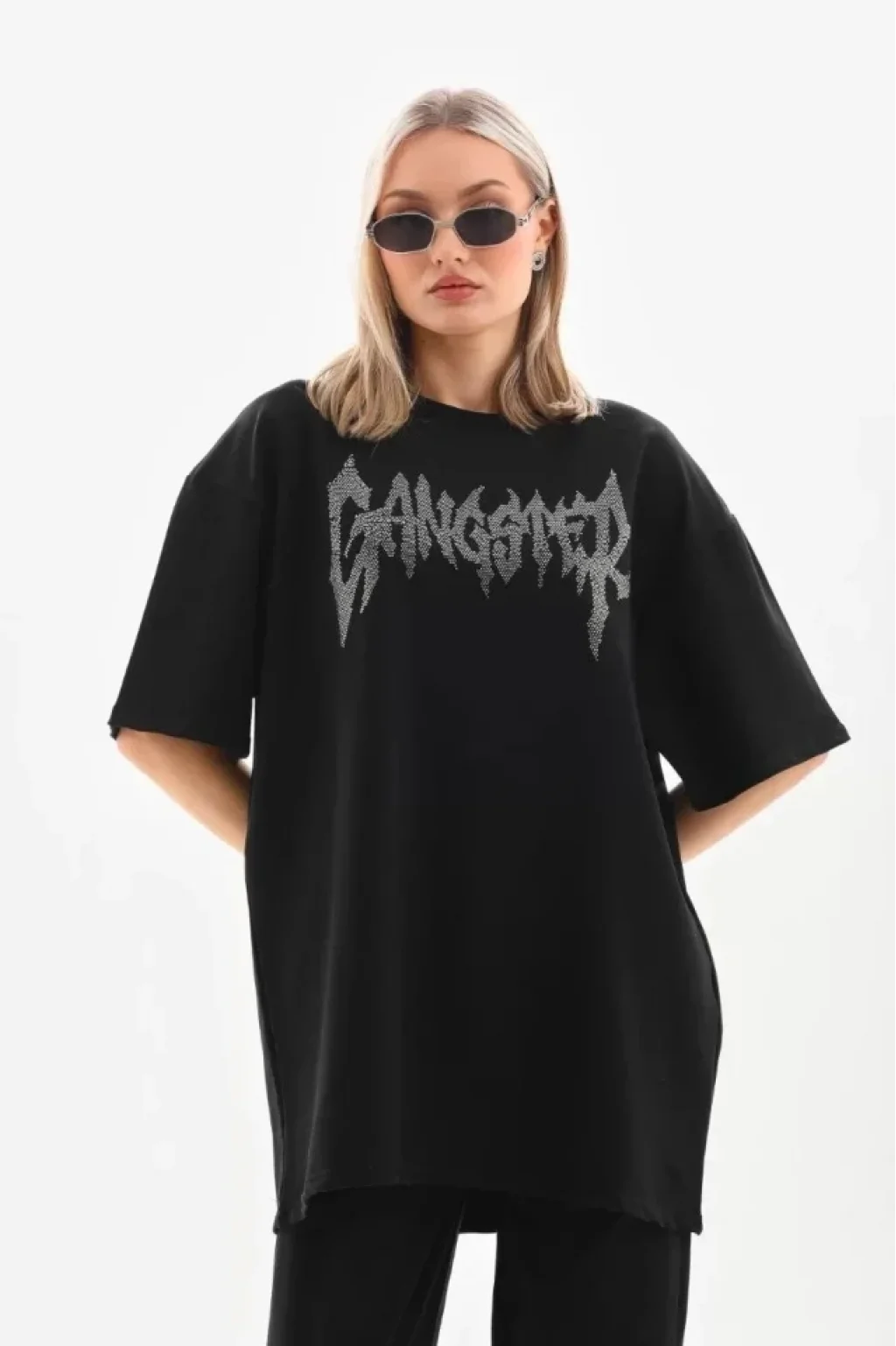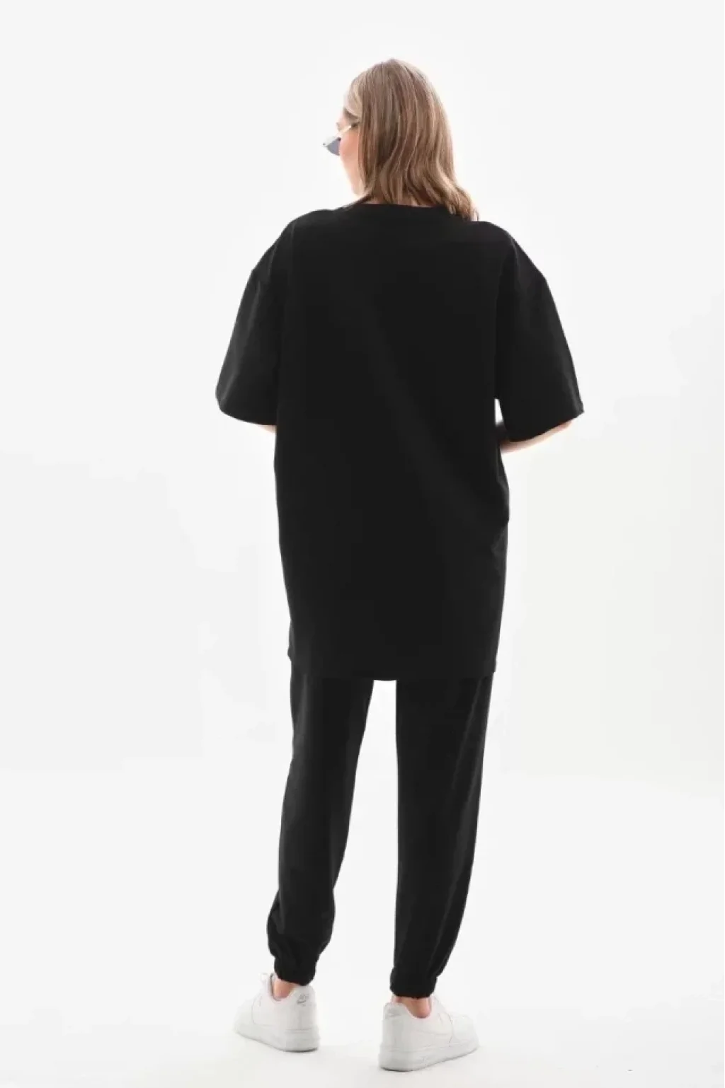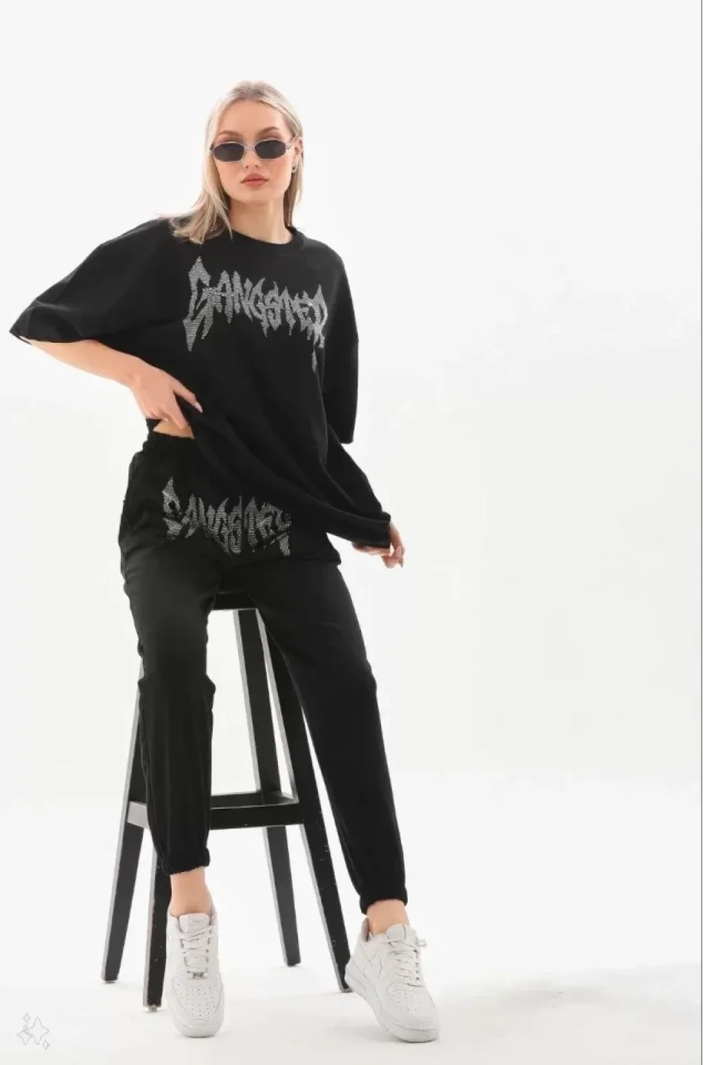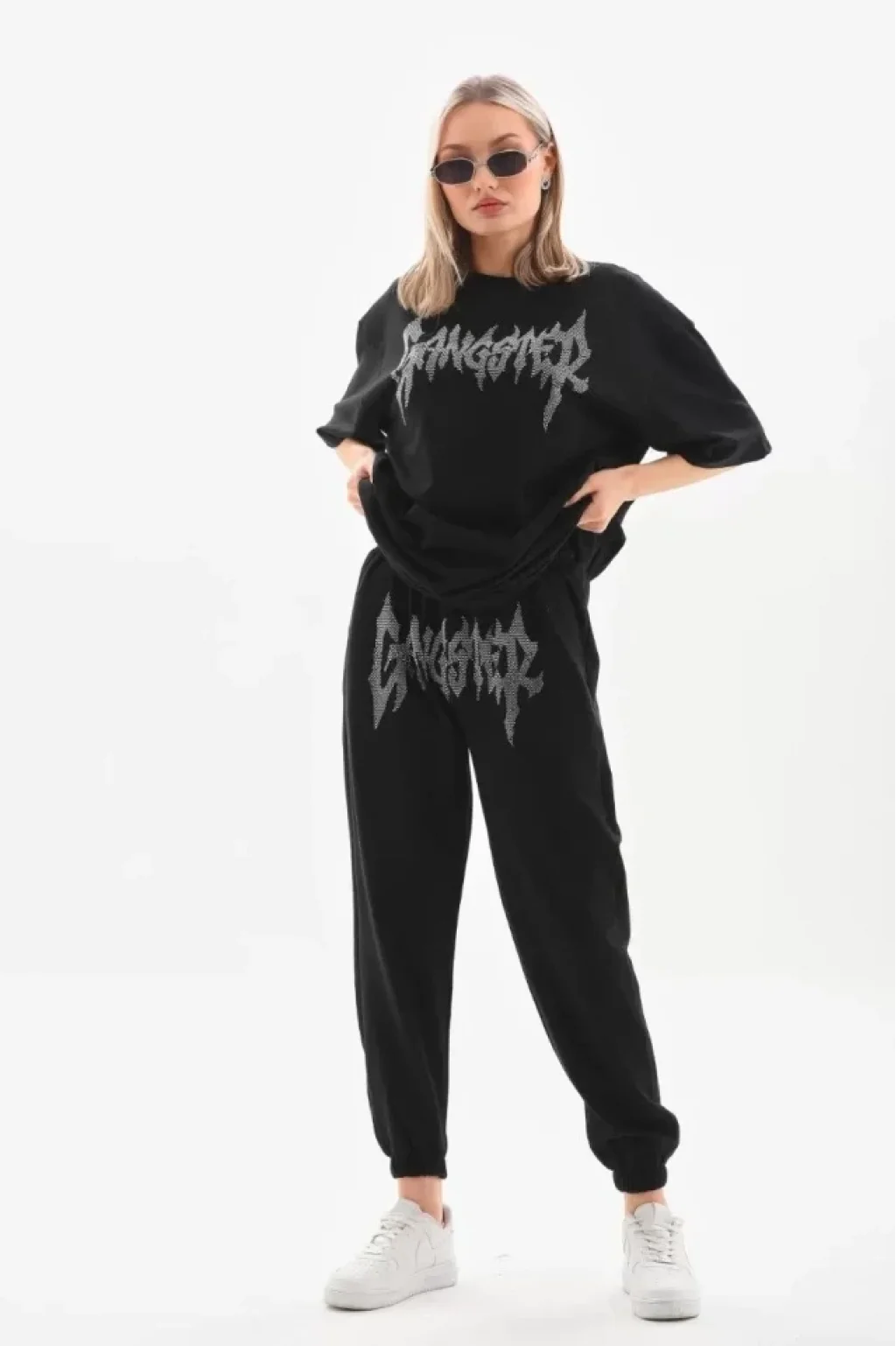 Unisex Taşlı T-Shirt Ve Eşofman Takımı - Siyah