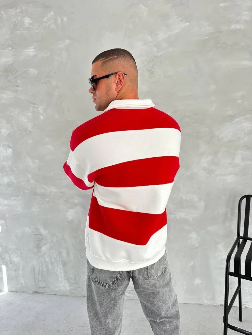Unisex Üç İplik Parçalı Yakalı SweatShirt - Kırmızı
