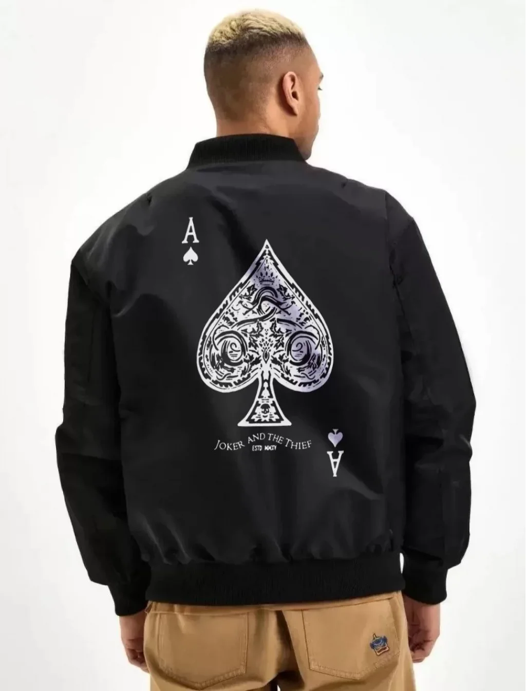 Unisex Uzun Kol Baskılı Bomber Ceket - Siyah