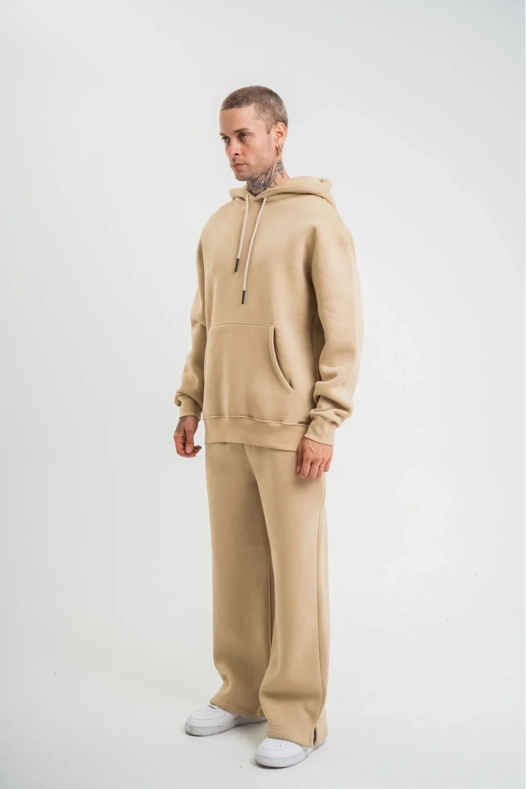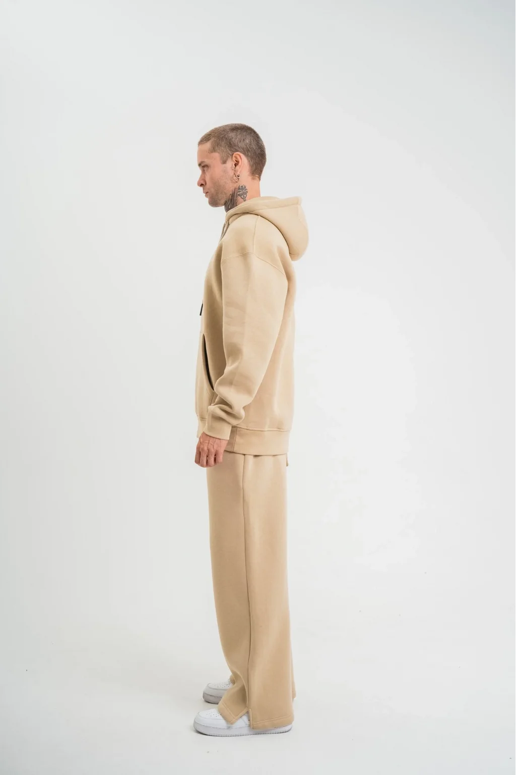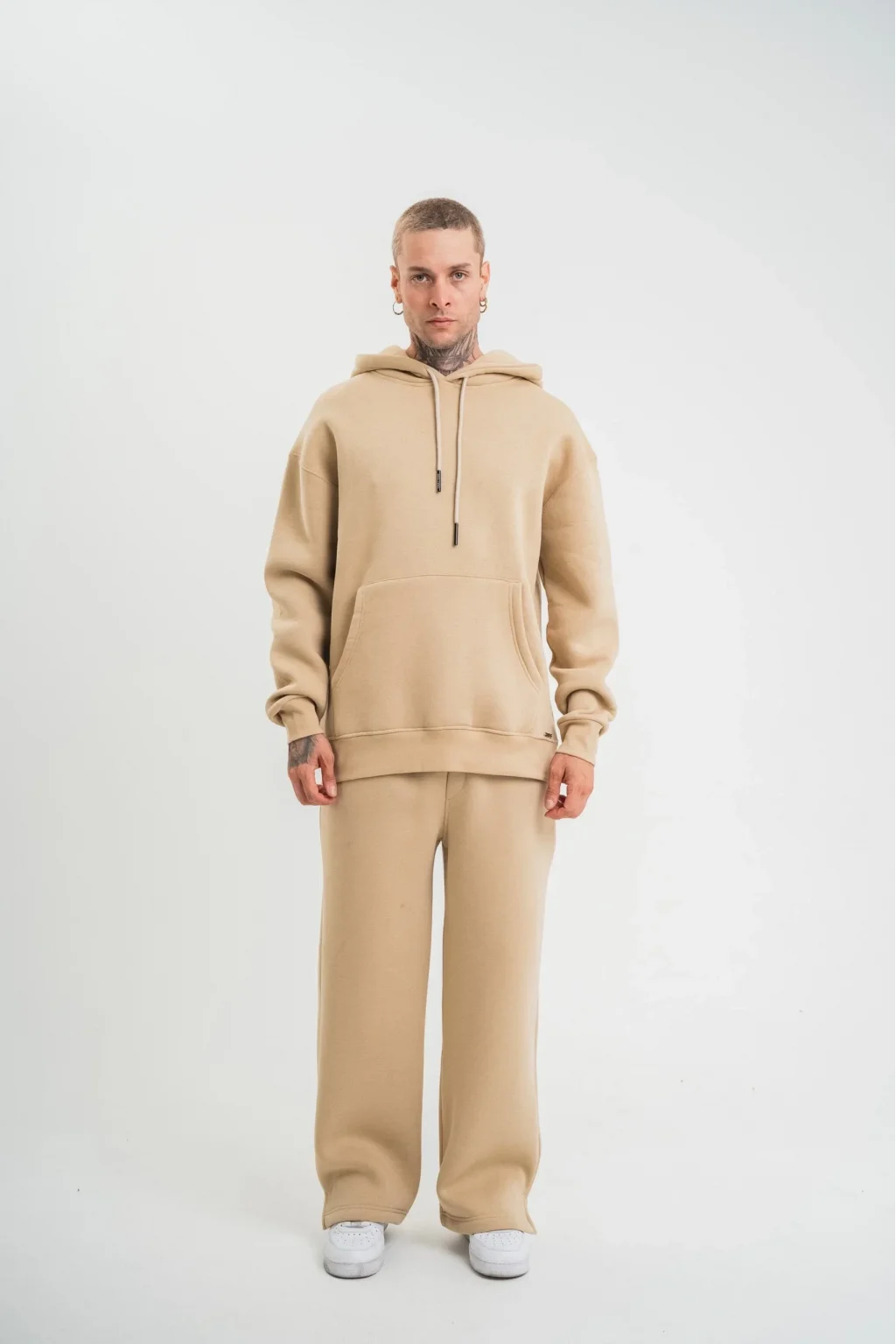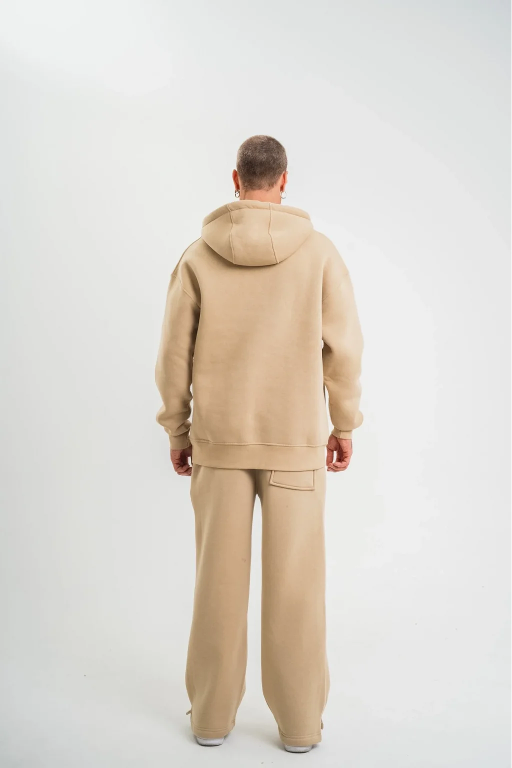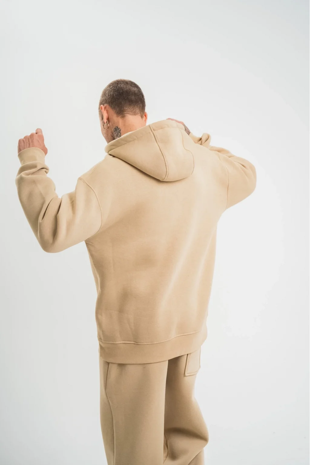 Unisex Uzun Kol Kapşonlu Eşofman Takım - Bej