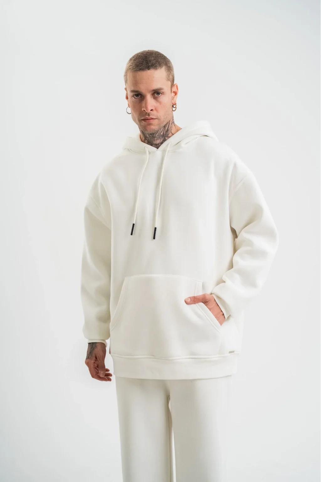 Unisex Uzun Kol Kapşonlu Eşofman Takım - Beyaz