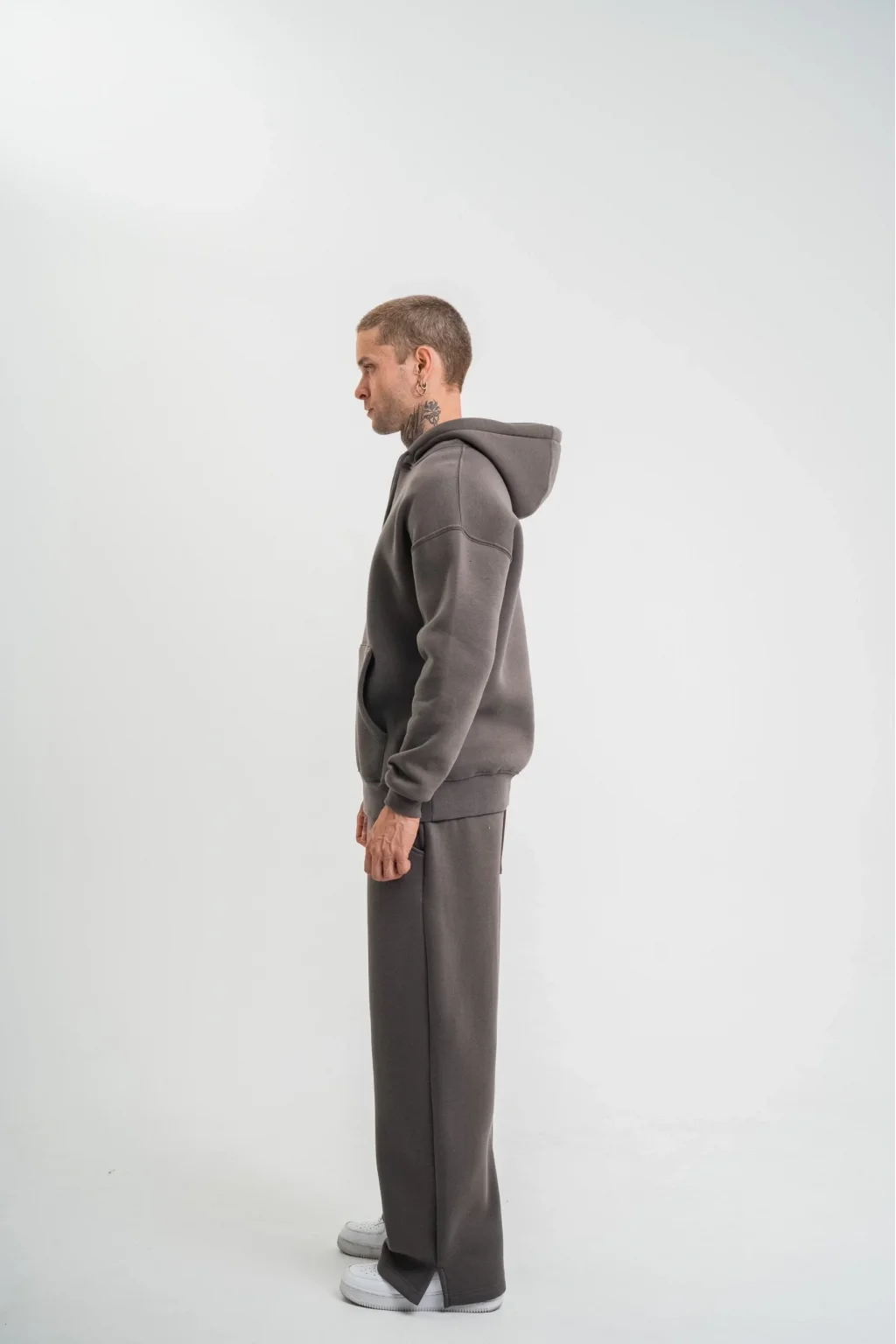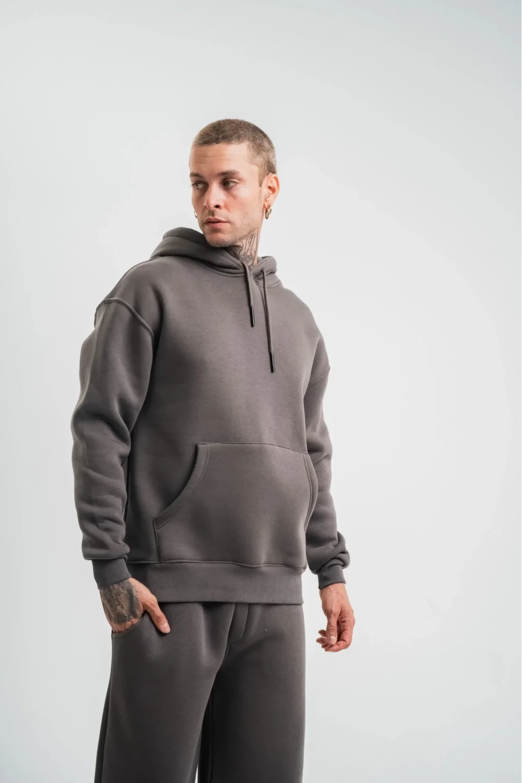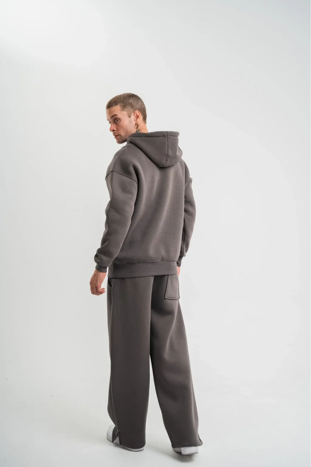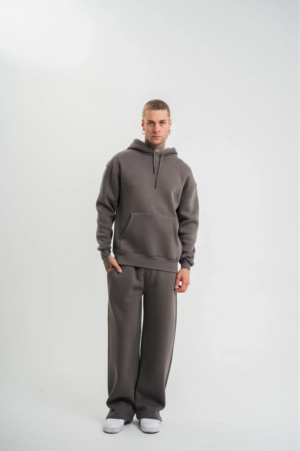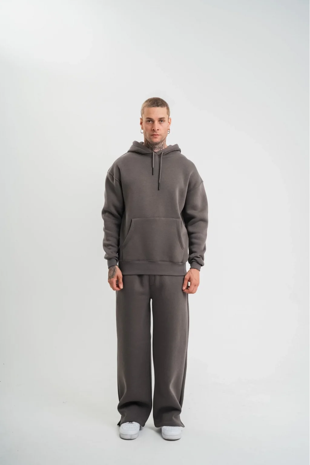 Unisex Uzun Kol Kapşonlu Eşofman Takım - Füme