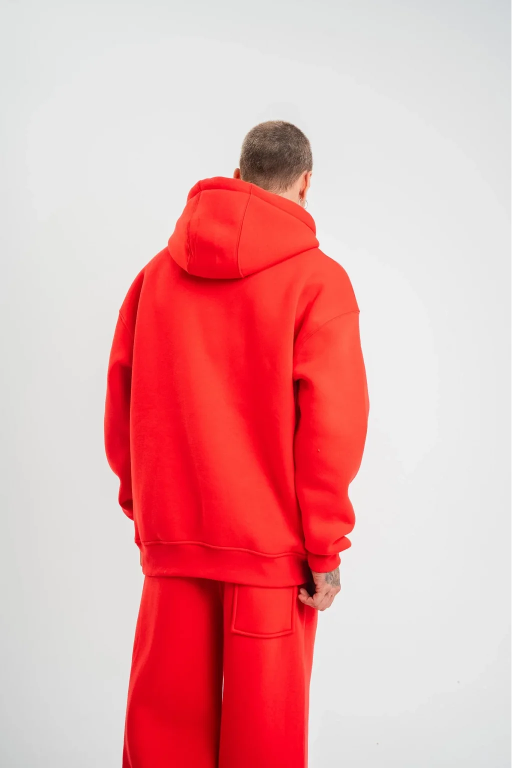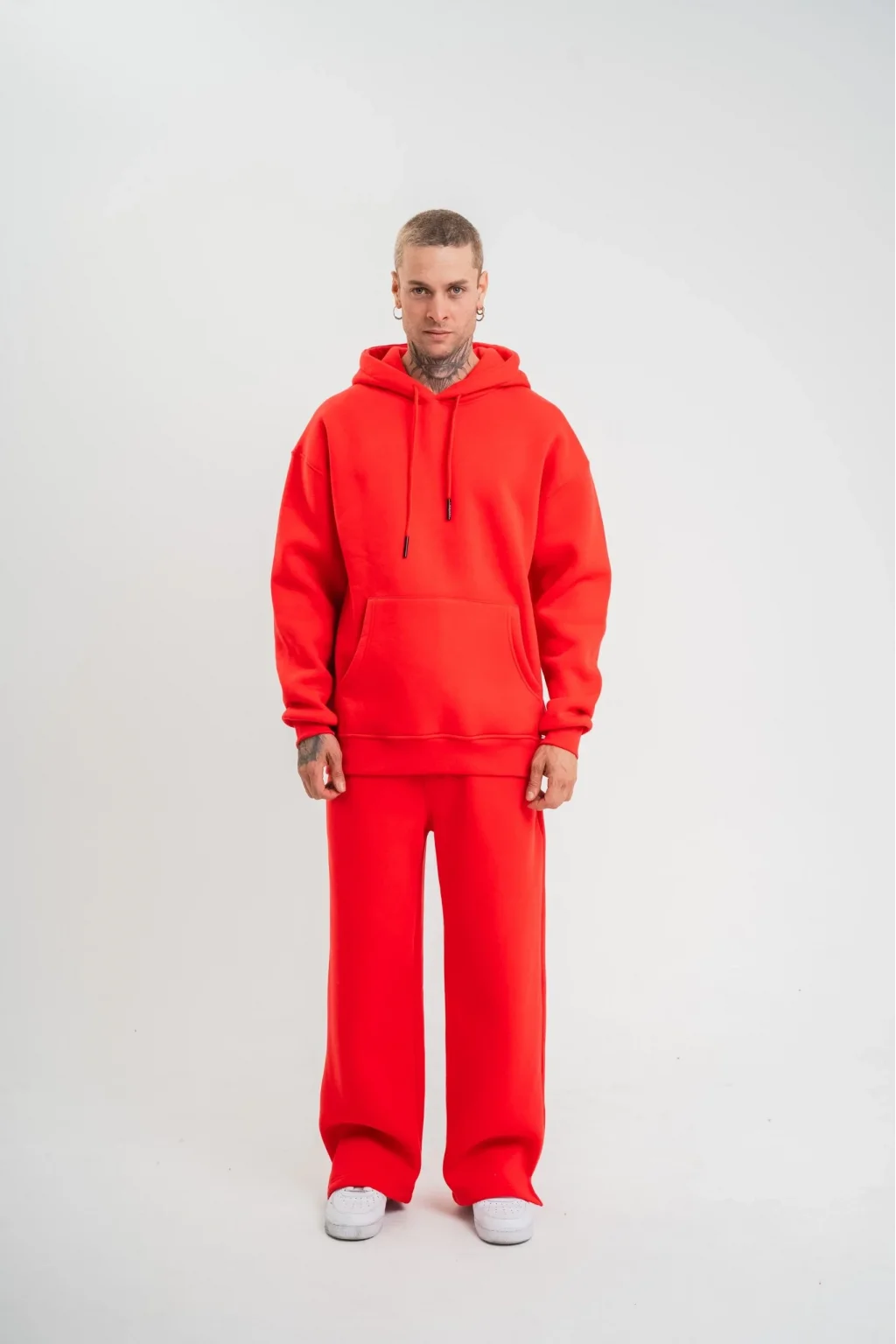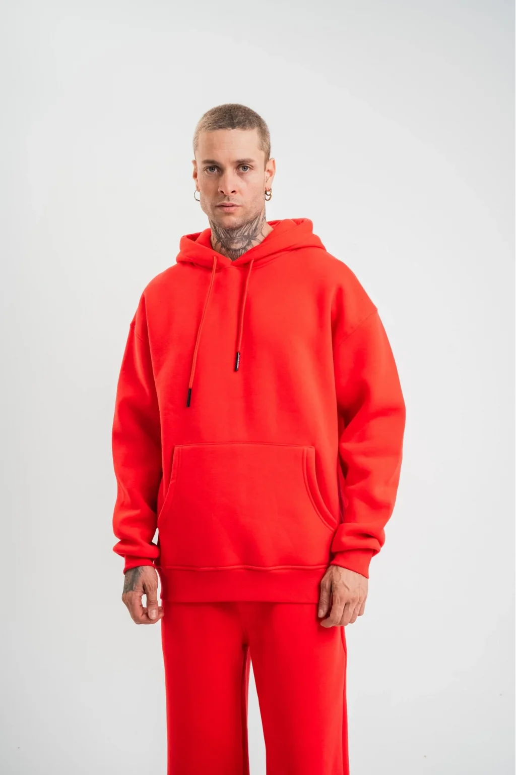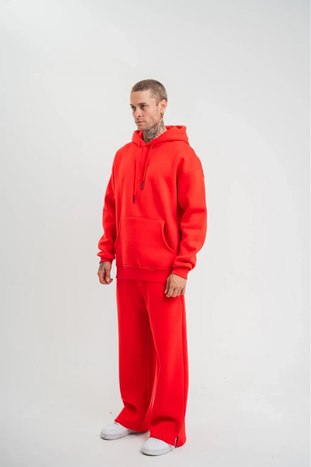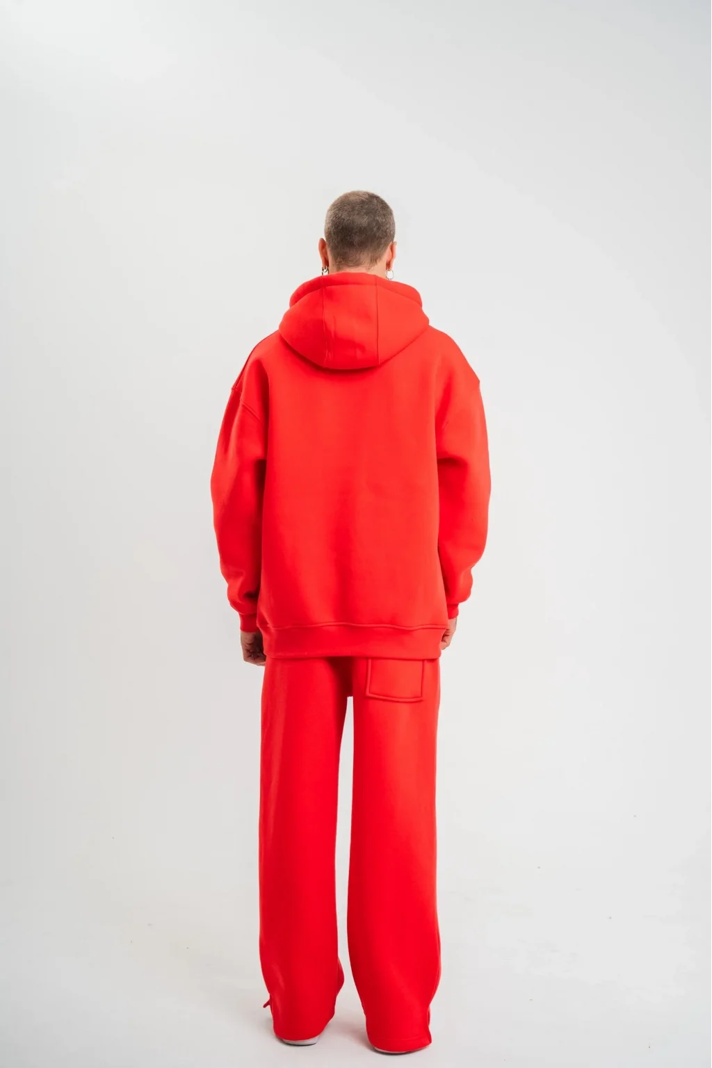 Unisex Uzun Kol Kapşonlu Eşofman Takım - Kırmızı