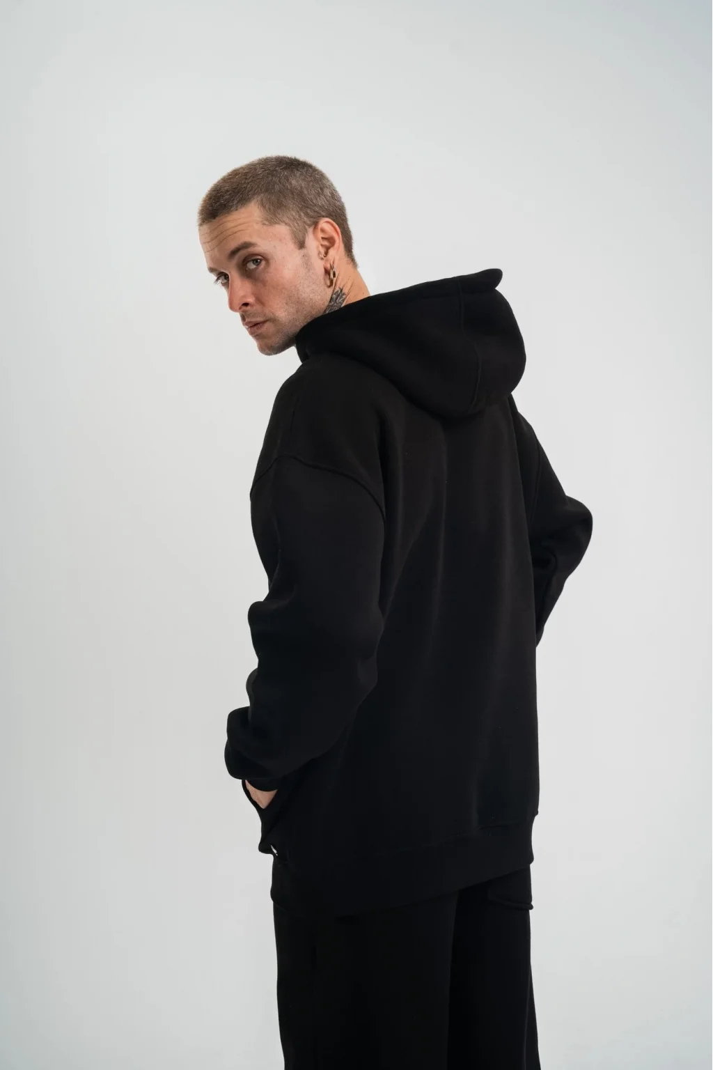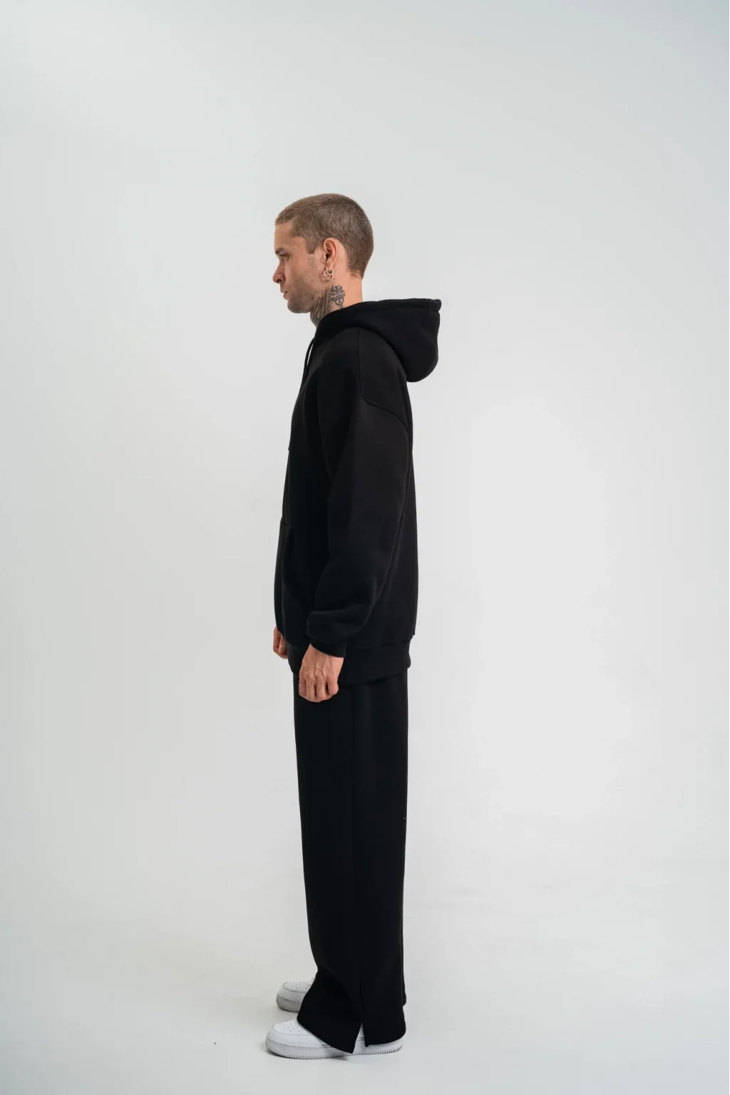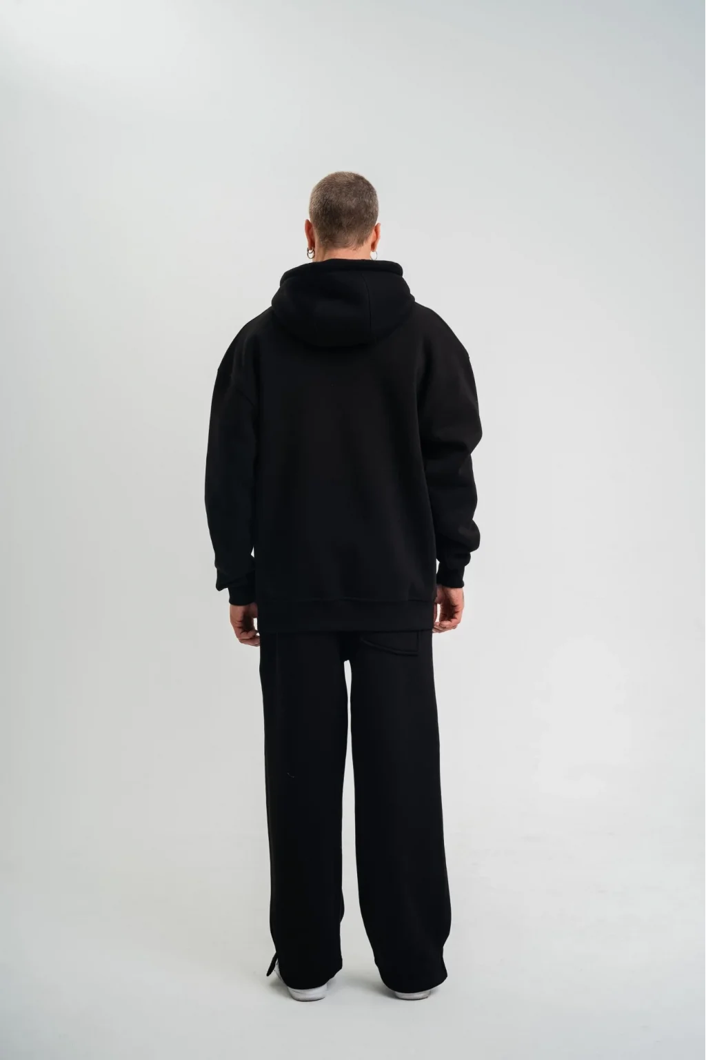 Unisex Uzun Kol Kapşonlu Eşofman Takım - Siyah
