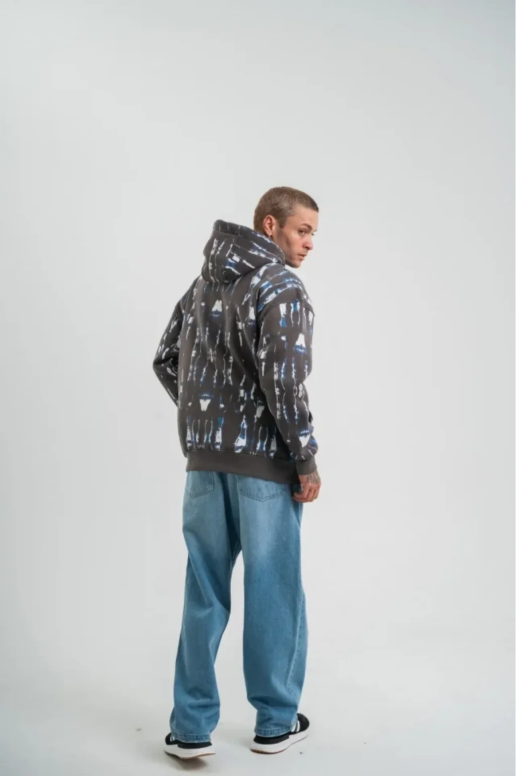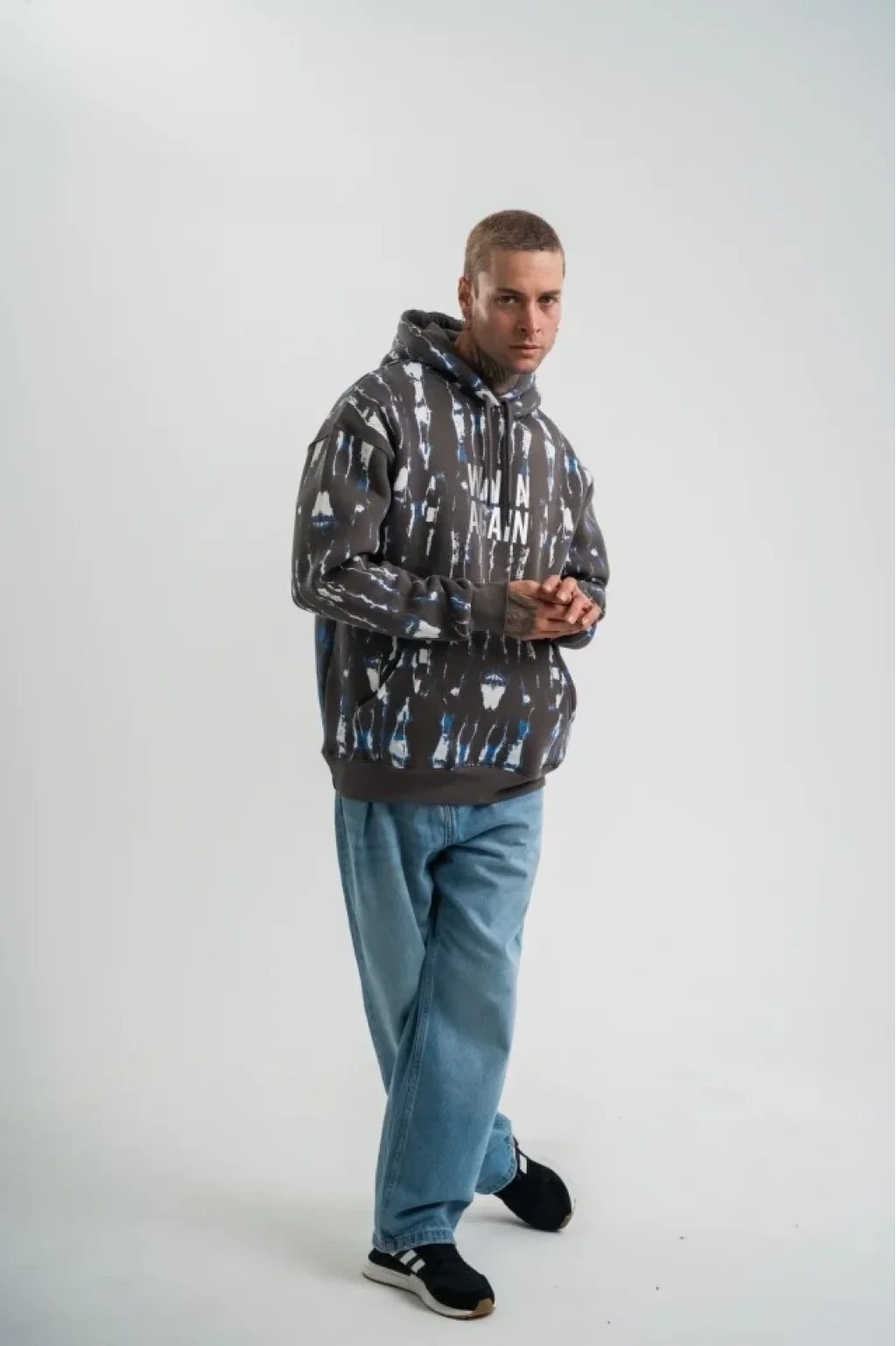 Unisex Uzun Kol Kapşonlu Pano Baskılı SweatShirt - Füme