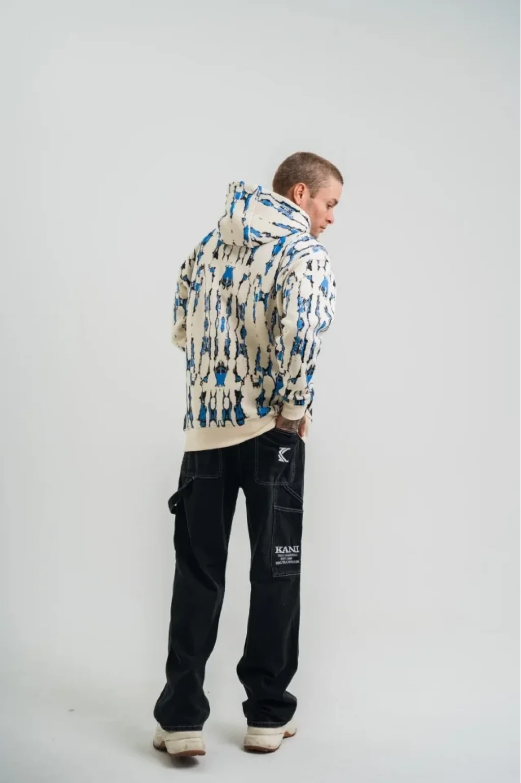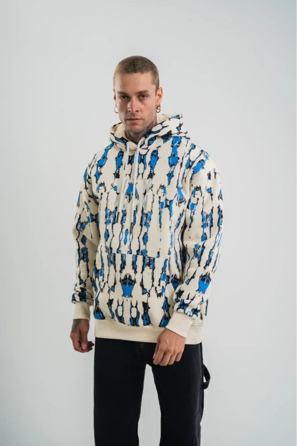 Unisex Uzun Kol Kapşonlu Pano Baskılı SweatShirt - Krem