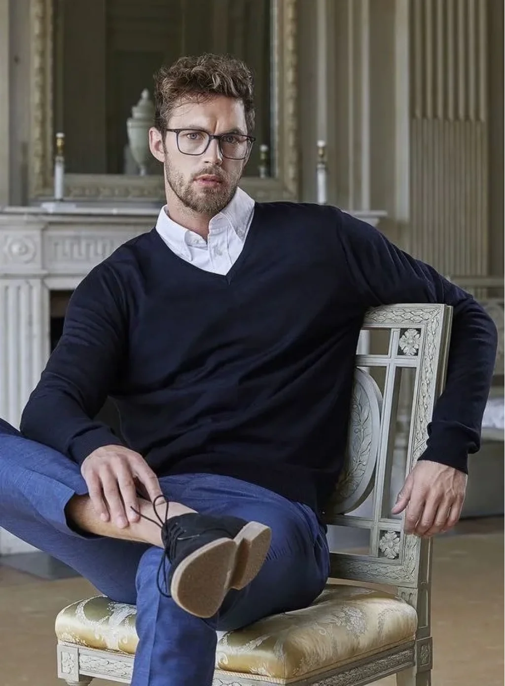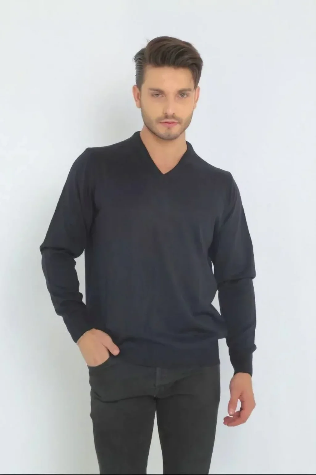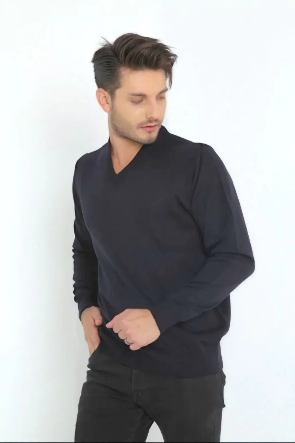 Unisex Uzun Kol V Yaka Triko Kazak - Lacivert