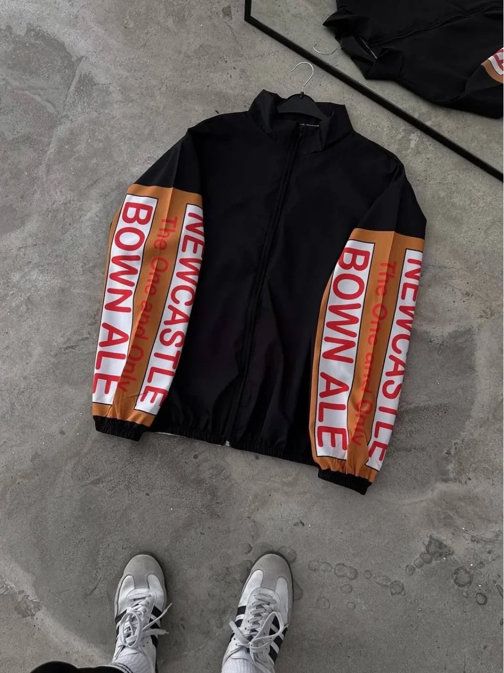 Unisex Vintage Baskılı Paraşüt Rüzgarlık - Siyah